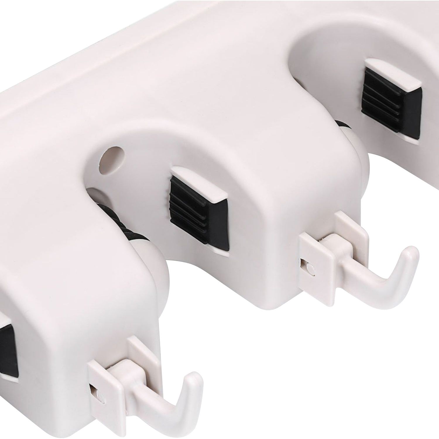 Easy to install and use: the garage hooks friction-grips clamp down securely on broom/mop handles, adjusting automatically to the handle's thickness. And release instantly when the handle is lifted.