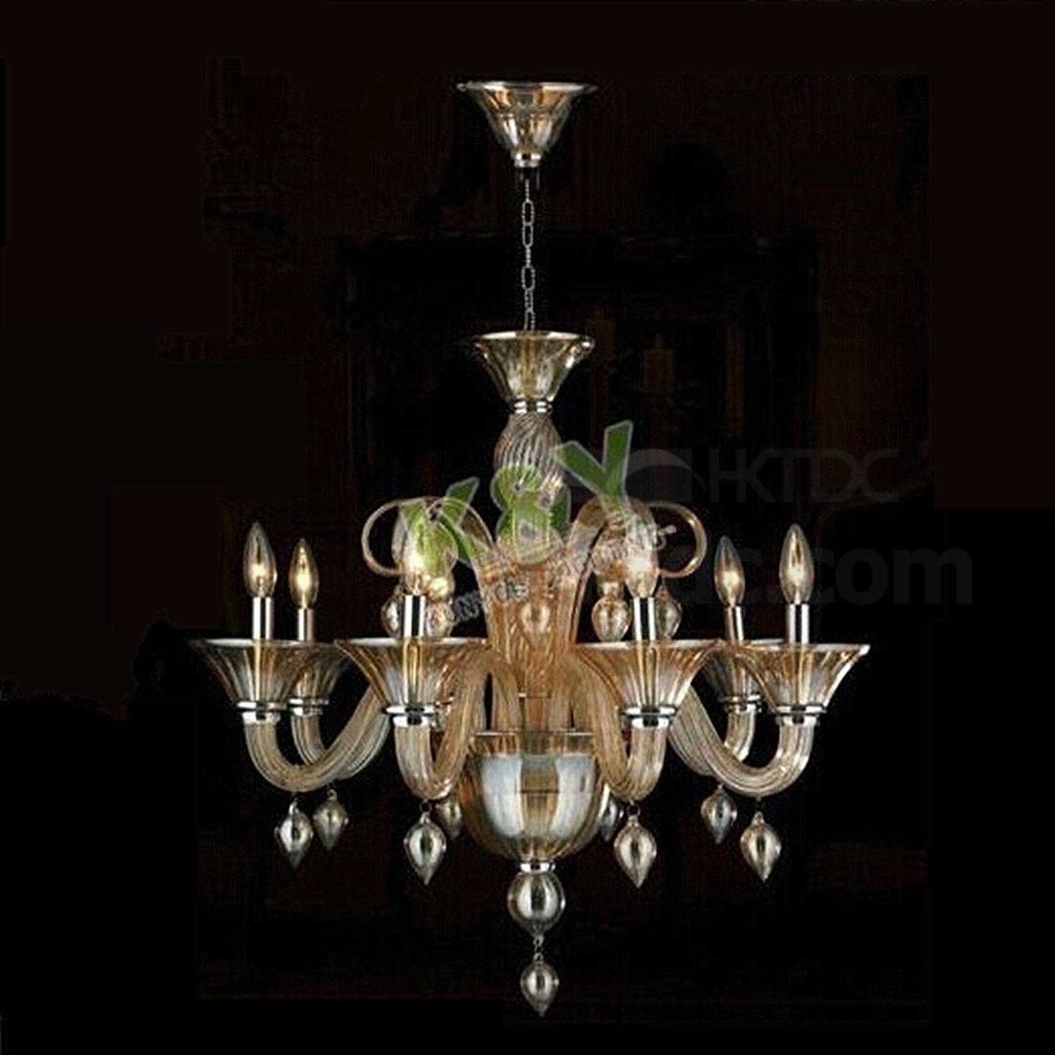 This is a decorative crystal chandelier that is finely crafted with exquisite details. The light beams through the candle-shaped bulbs create a soft and warm effect. The robust frame ensures long-lasting durability.