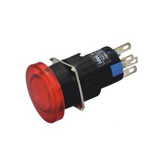 This is a mushroom button switch that boasts a robust housing for an extra-long service life. It is well engineered to withstand daily wear and tear. The silvery-toned metal pins allow maximum connectivity.