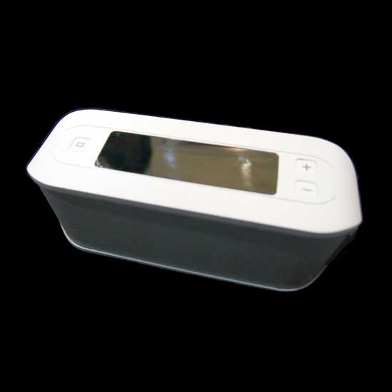 This compact music speaker supports Bluetooth V2.1 auto connection. It comes with a digital screen that can show the 24-hour clock and the incoming call ID. This portable Bluetooth speaker in white is great for music lovers.