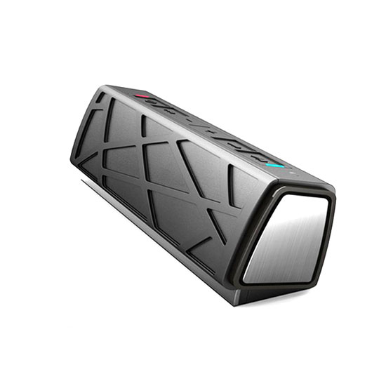 Displayed is a music speaker coming with an allover gray and silvery finish. The drivers give off high audio output and high definition sound quality. It is compatible with most digital music devices on the market.
