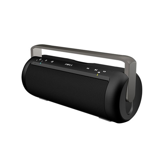 This is a music speaker coming in an all-black casing for added trendiness. It gives off superior sound quality with high audio output. It is fitted with a sturdy handle for easy carrying.