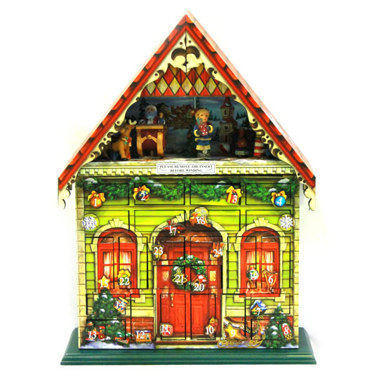 Shown here is a beautiful musical box designed in a classic house shape. The house boasts delicate paintings in wonderful colors. Wind up the house and lovely characters will pop out along with the wonderful music.