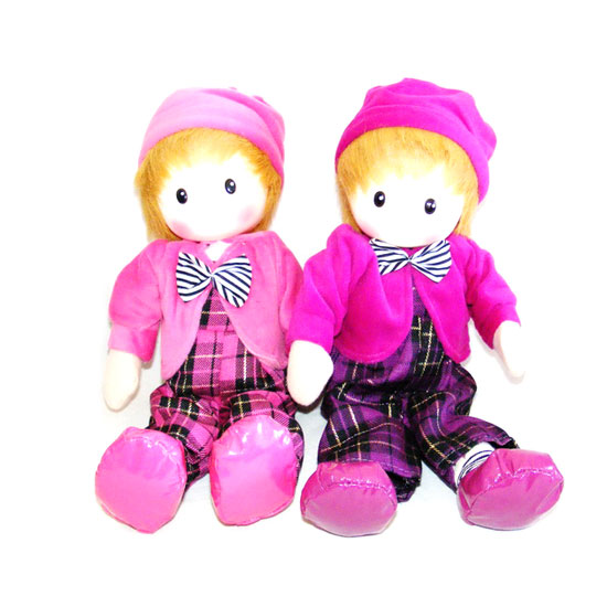 This musical doll is dressed in a checked onesie and pink jacket. The doll also comes with a striped bowtie and pink hat for an adorable look. Made of top grade fabric, this doll is comfortable to hug.