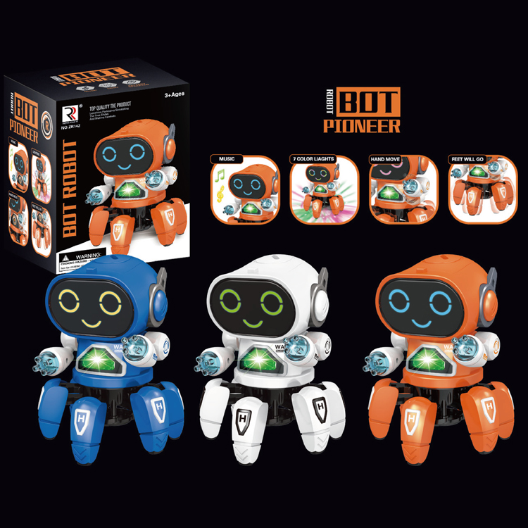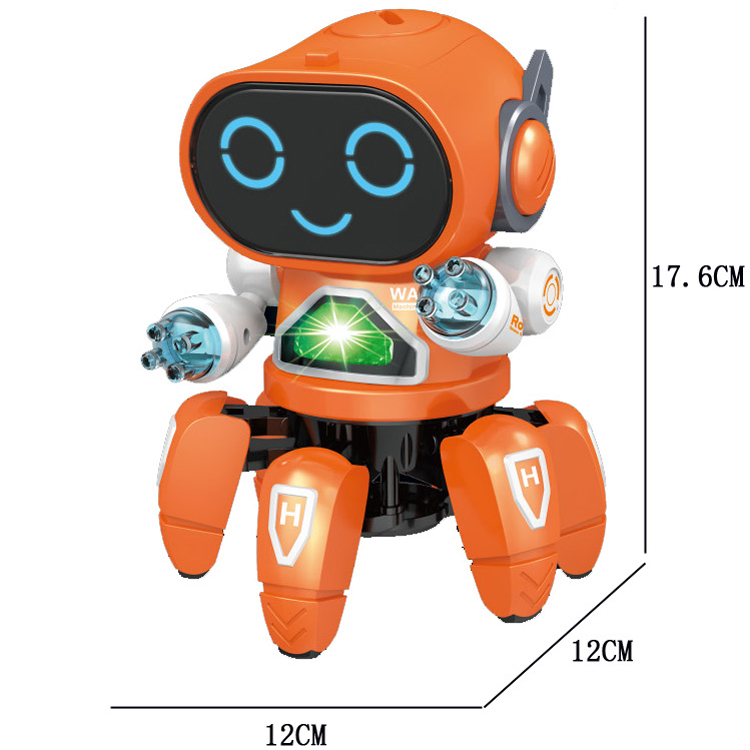 • Description:Turn around musical electronic toy spider robot Octopus dance robot toy with 6 legs