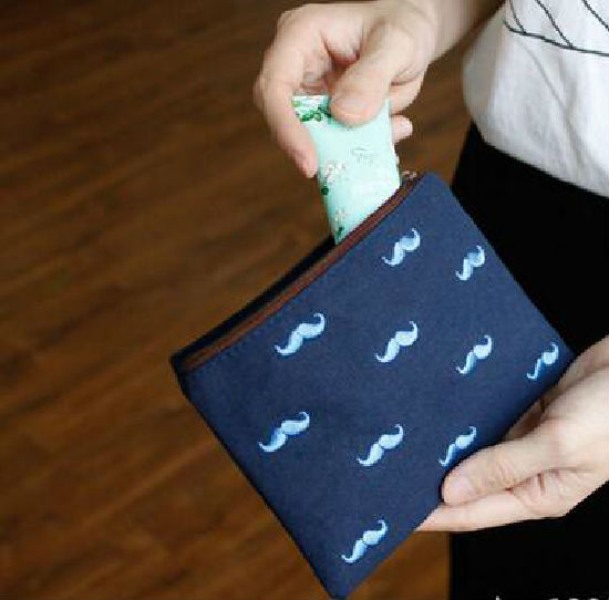 Mustache Cosmetic Bag is made of canvas with silk printing logo