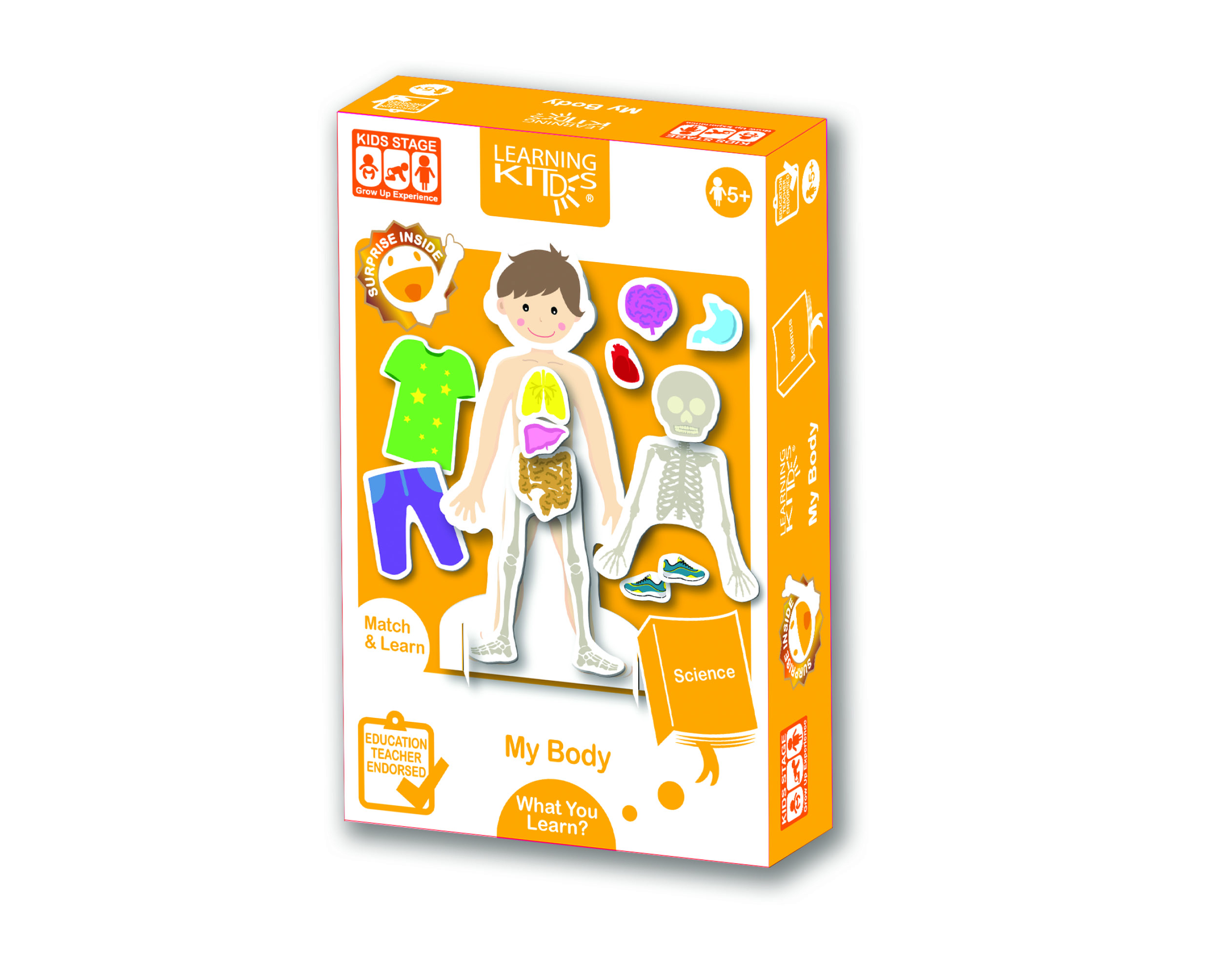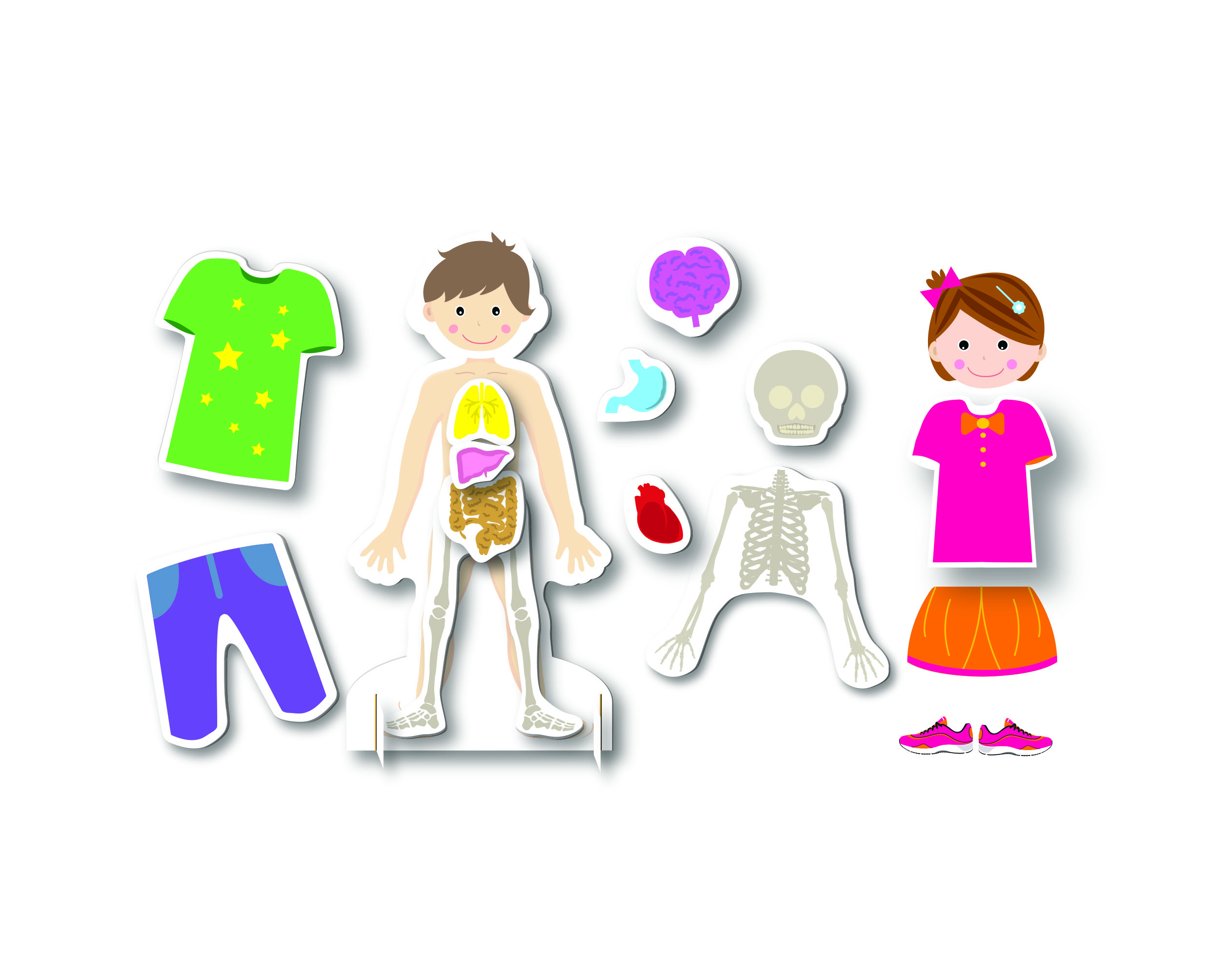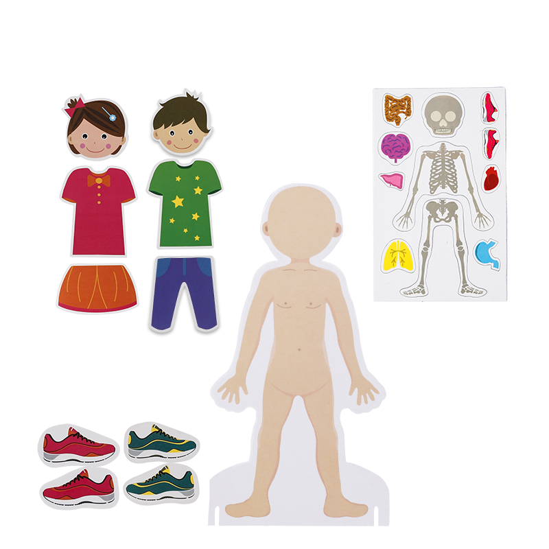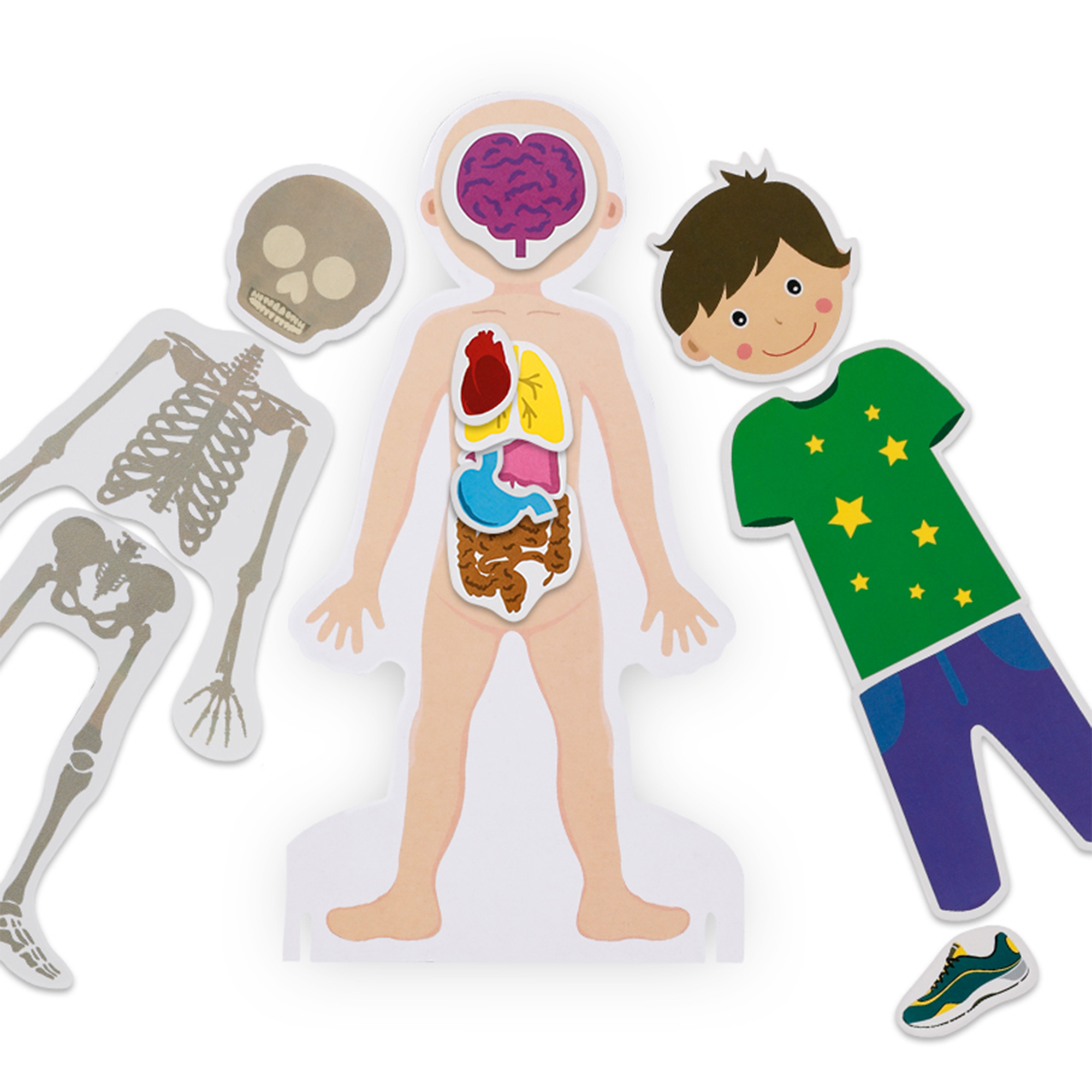 Visualize our skeleton, internal organs, and more by placing magnetic pieces on the body card. Learn about our body while having fun!