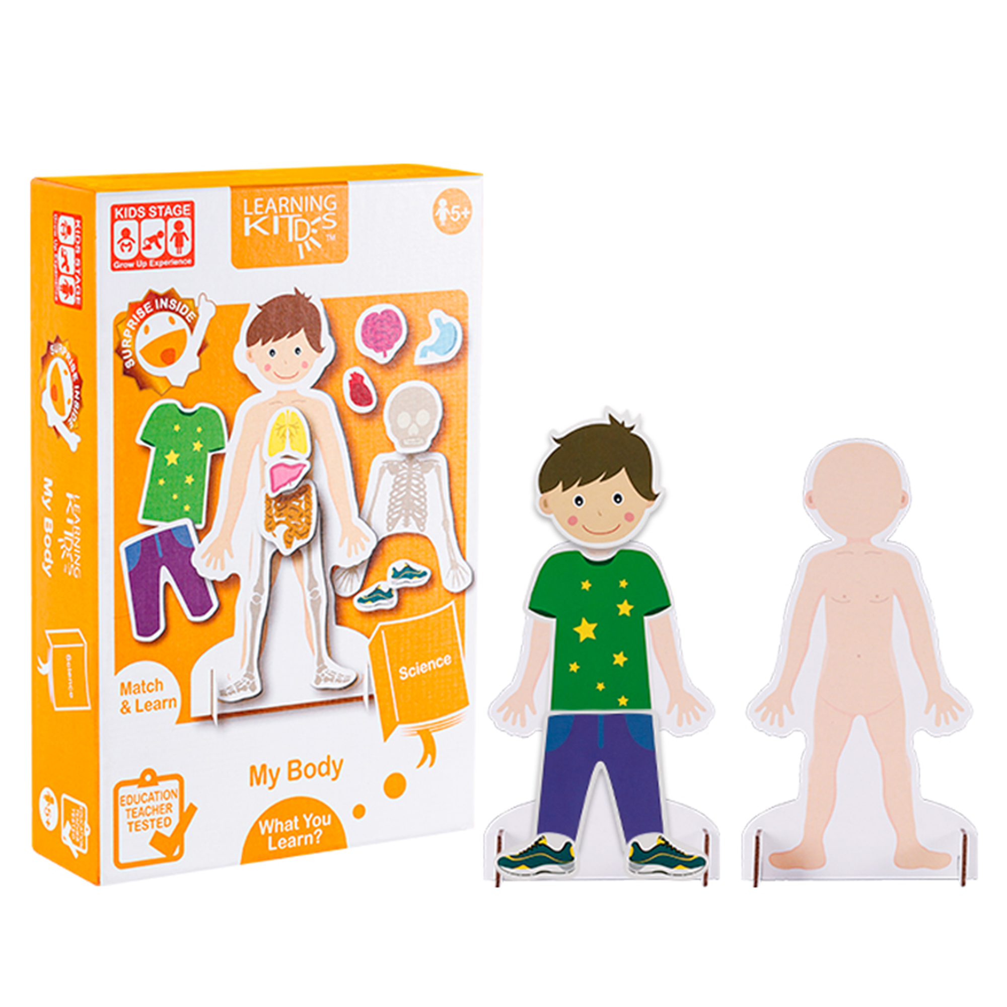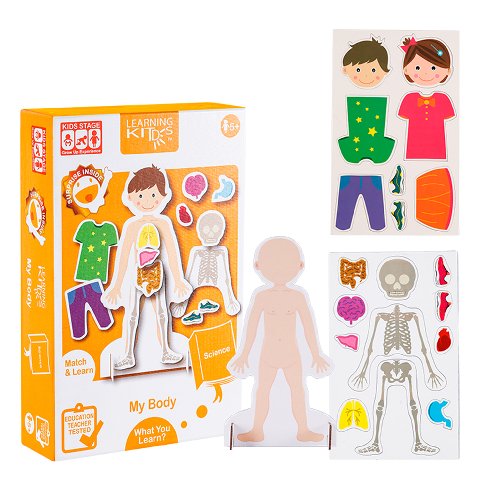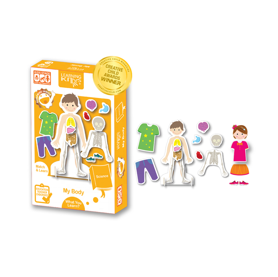 Visualize our skeleton, internal organs, and more by placing magnetic pieces on the body card. Learn about our body while having fun!