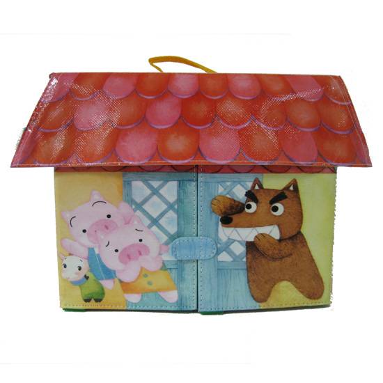 It is a decoration designed like the house in the story of "Three Little Pigs". The door of the house is openable, and it is foldable for easy storage. Construction of the house is designed authentically.