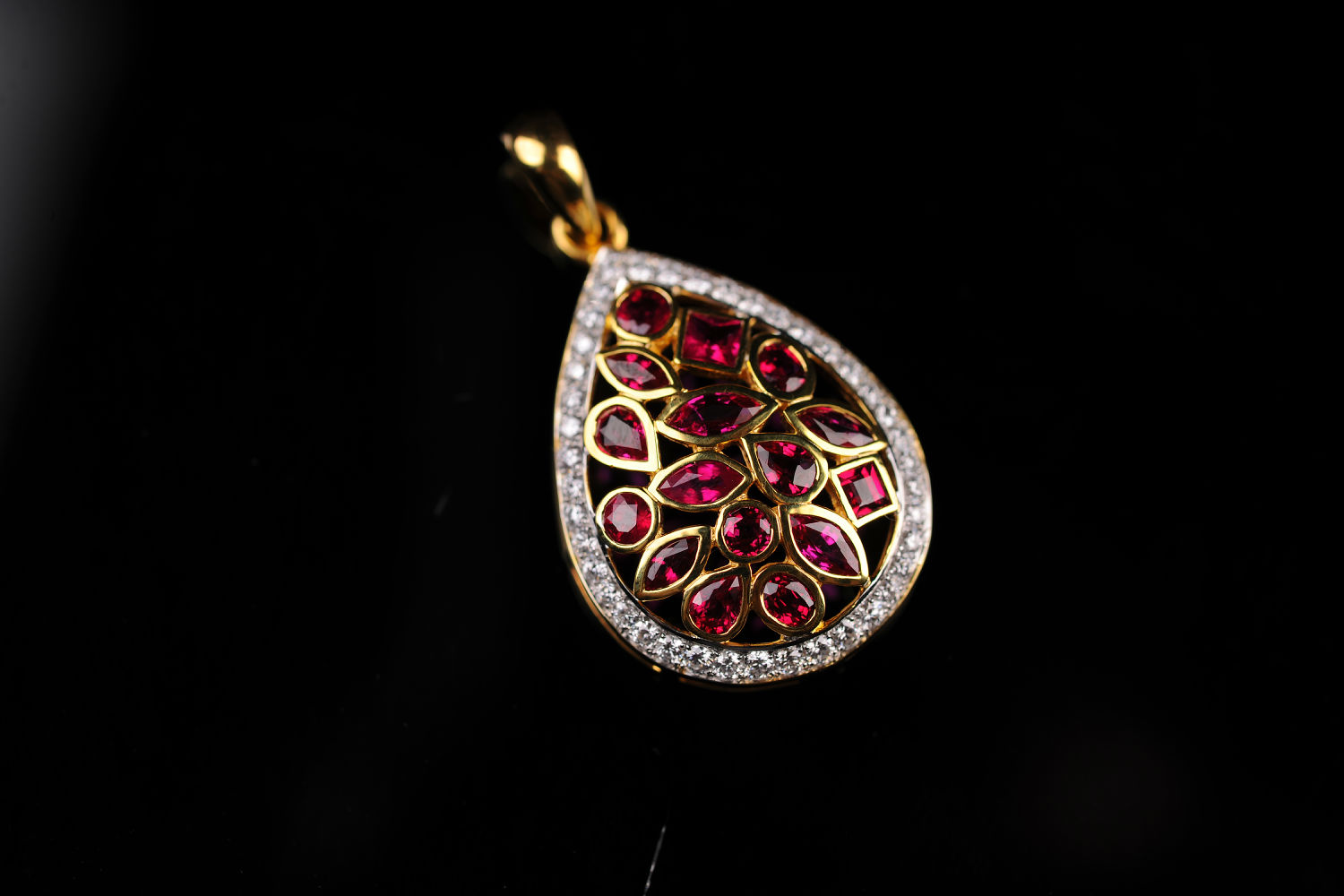 16 pieces of multiple shape of Myanmar Ruby and 41 pieces of Diamonds set with 18K yellow gold