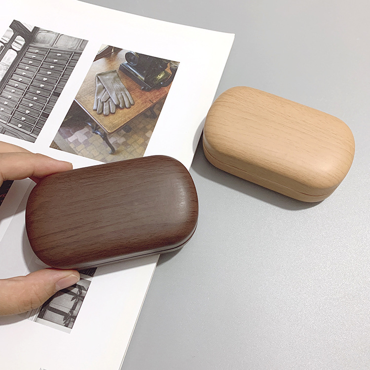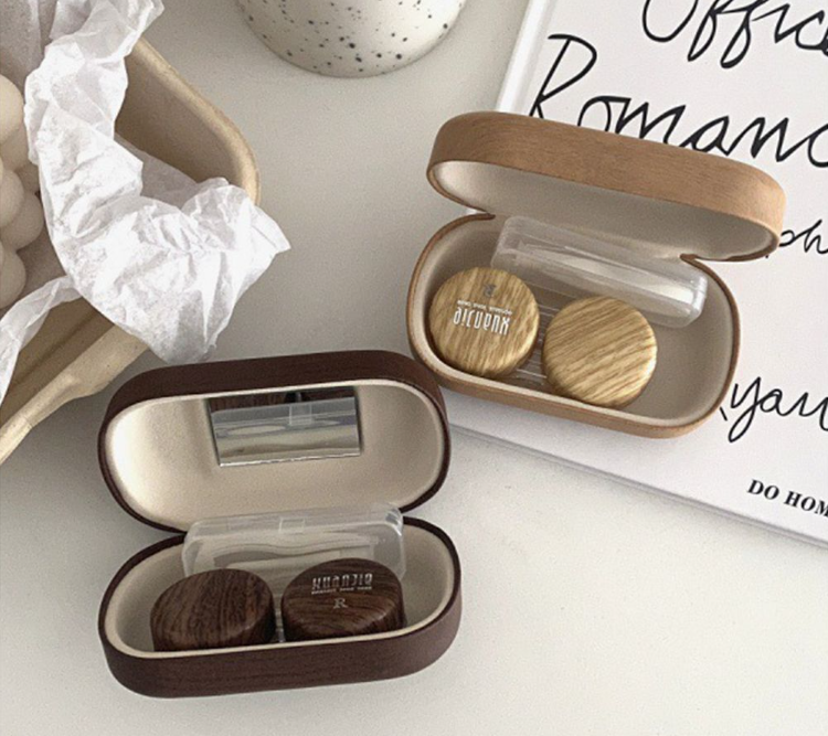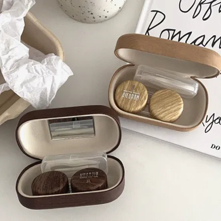Myopia contact lens case retro leather wood grain large diameter leak-proof storage double companion simple contact lens box