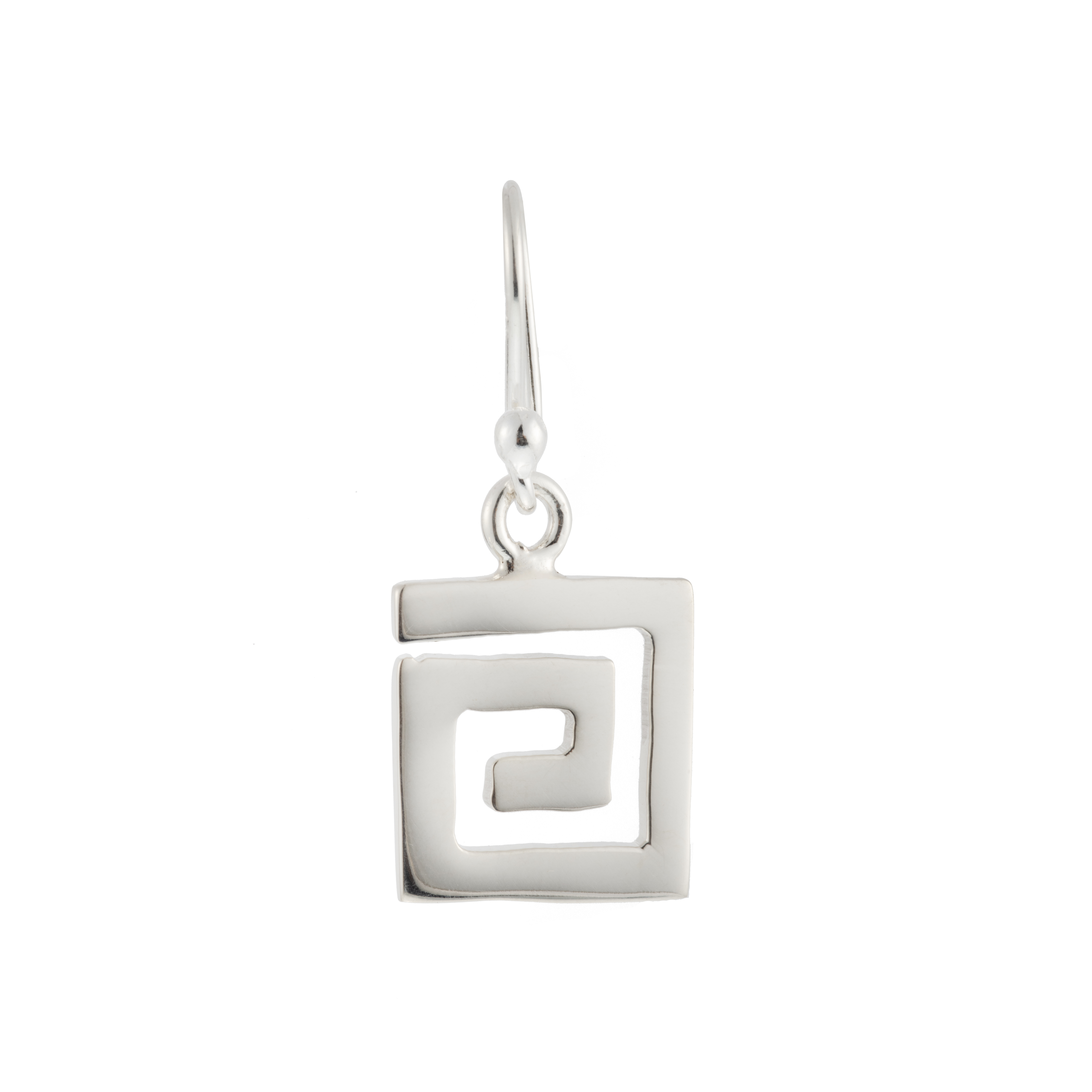 The mystery earrings, crafted in silver, feature a design inspired by pre-Hispanic fret patterns, geometric symbols that represented sacred ideas, the connection with the gods, and the order of the universe.