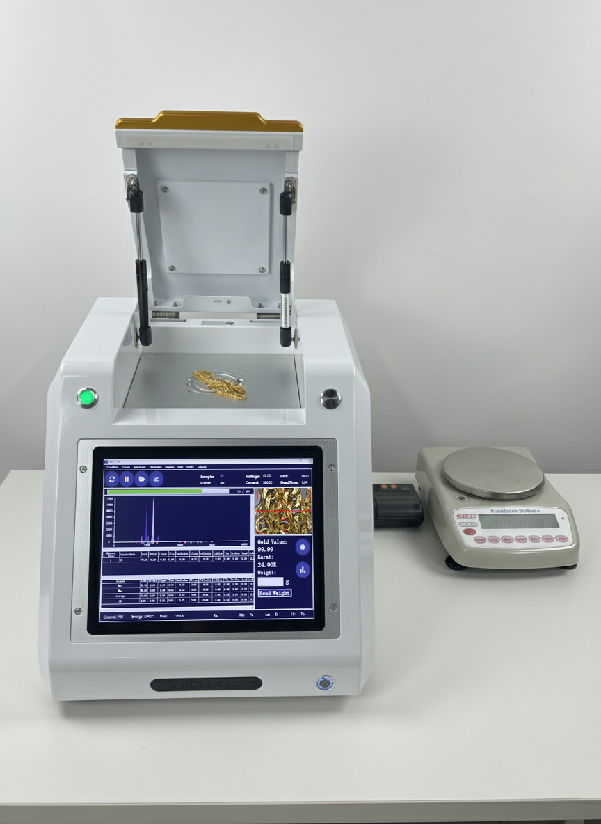 ● Fast and Non-Destructive: Analyze materials without causing any damage, providing immediate results to your customers in-store. ● Integrated Scale and Label Printer: Quickly weigh items and print professional labels with detailed material composition, adding a layer of trust and transparency for your clients. ● Compact, Store-Friendly Design: This analyzer’s small footprint and ease of use make it the perfect addition to any jewelry store, from boutiques to large retailers. ● User-Friendly Interface: Simplify staff training with an intuitive control panel that anyone in your store can operate with ease. ● Customizable Reporting: Provide your customers with printed reports detailing their item's composition, enhancing their shopping experience and reinforcing your store’s credibility.
