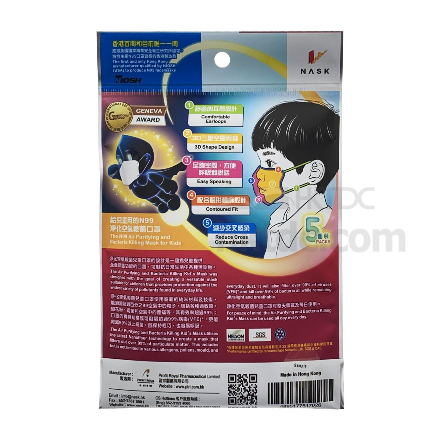 NASK Nanofiber Bacteria Killing Smart Mask (KID 5pcs/bag)