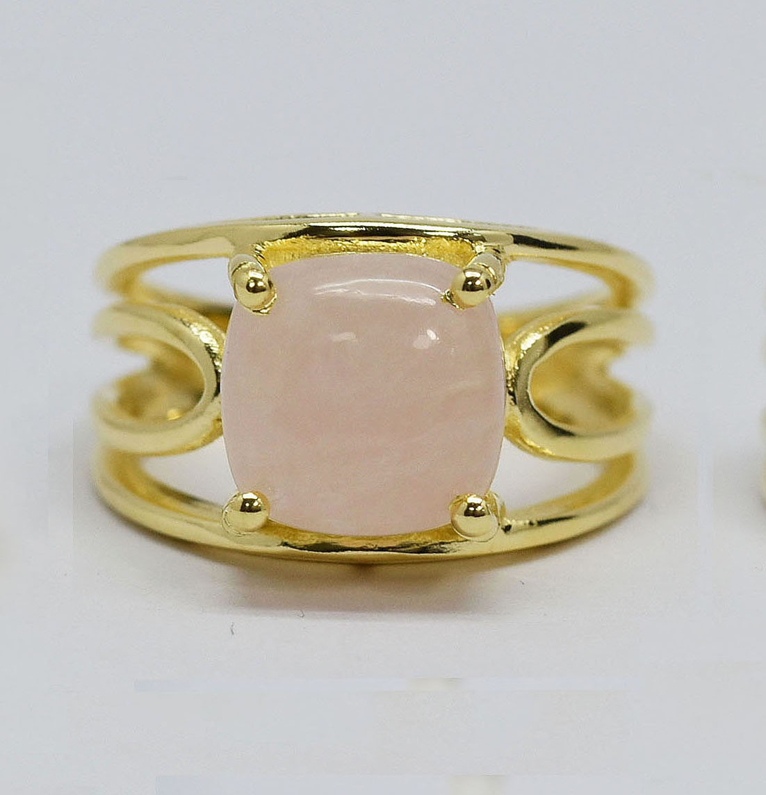 Rose Quartz and Gold Over Brass Ring.