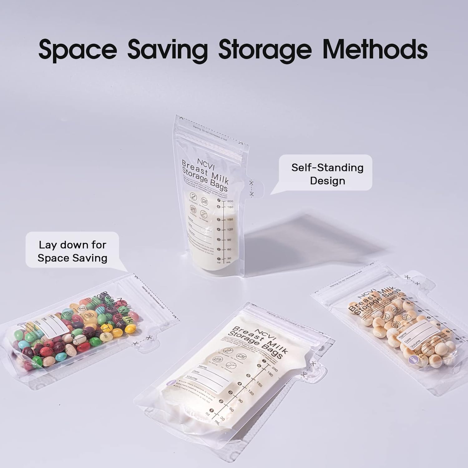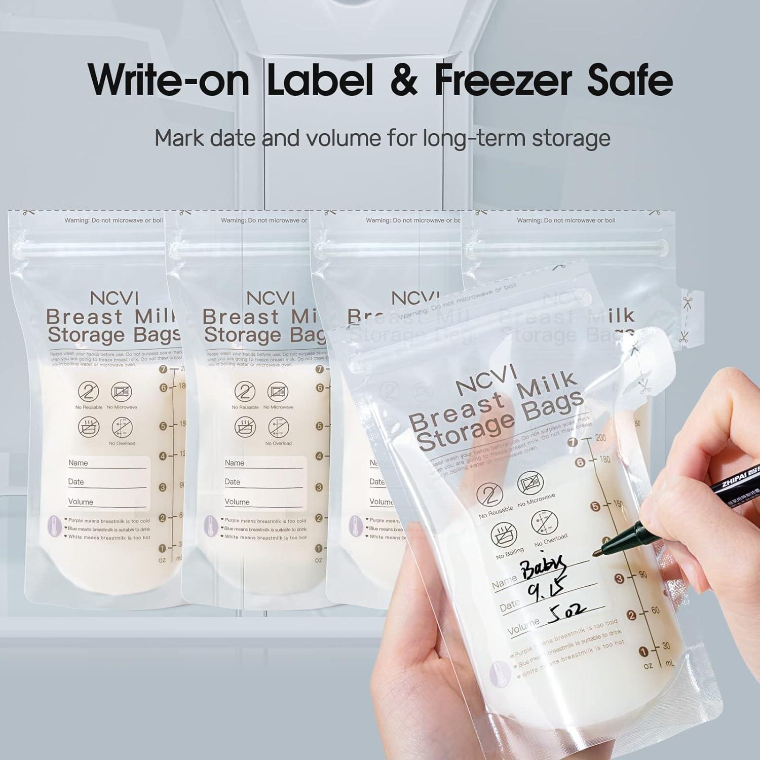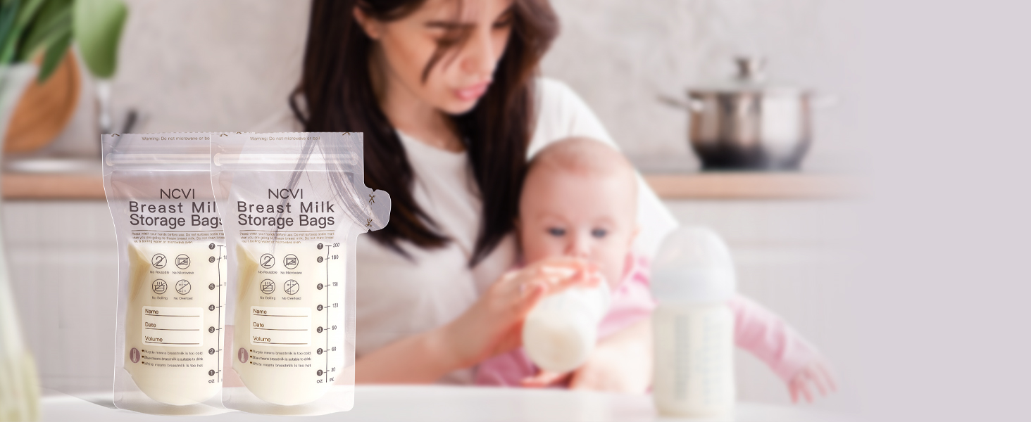 NCVI 90pcs/Box Milk Storage Bags for Breastfeeding Double-sealed 7oz NCVI Disposable Breastmilk Storage Bags