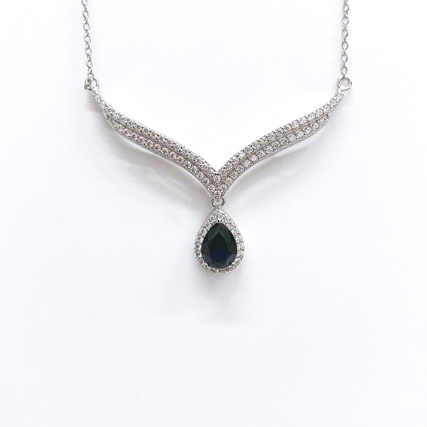 Silver Necklace with CZC in Rhodium plating