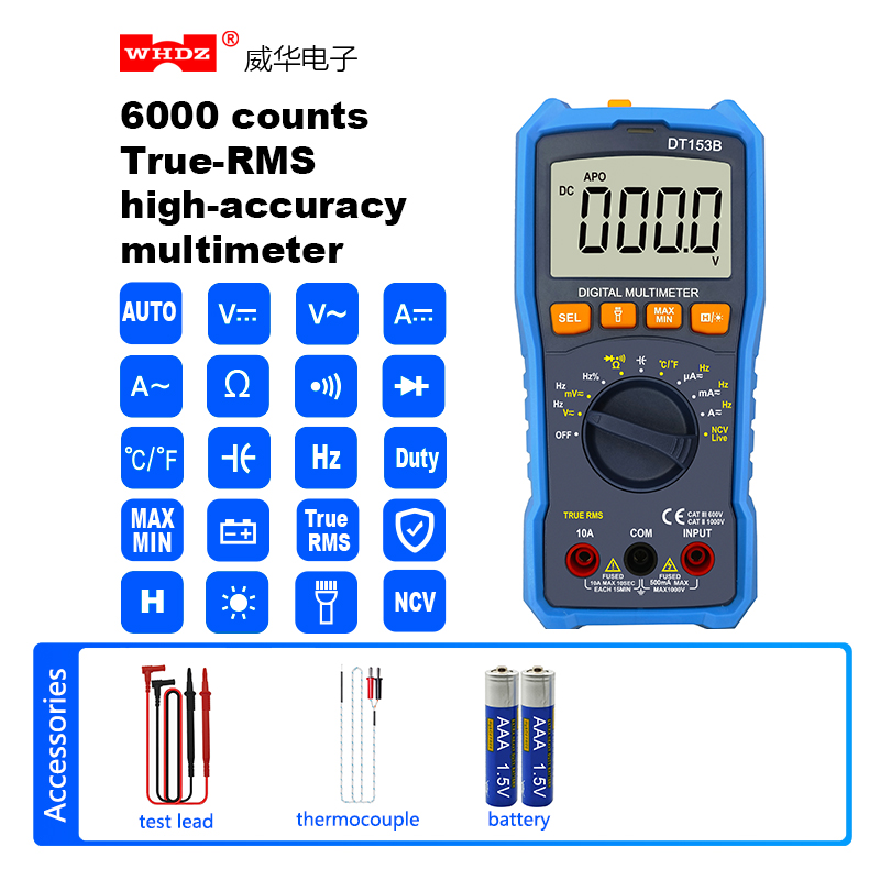NEW ARRIVAL 5999 Display Auto Range Multimeter DT153B with NCV test and Electric Torch