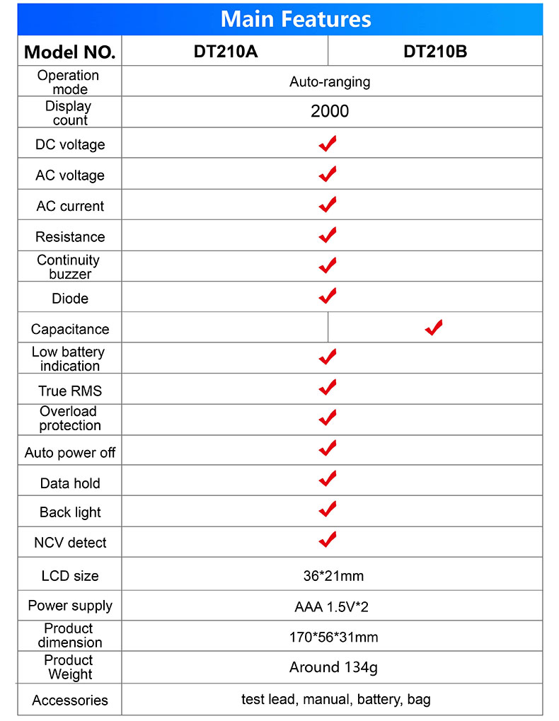 NEW Digital Clamp Meter with NCV test and MA Measure DT210B