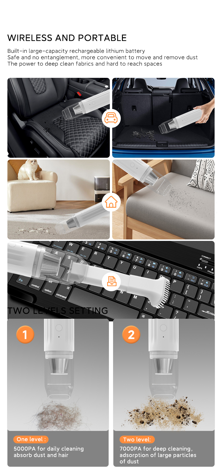 Adjustable Suction Power: The D01 features two levels of suction force, allowing you to tailor the cleaning intensity to the task at hand. Whether you're dealing with fine dust or larger debris, the D01 can handle it with ease.