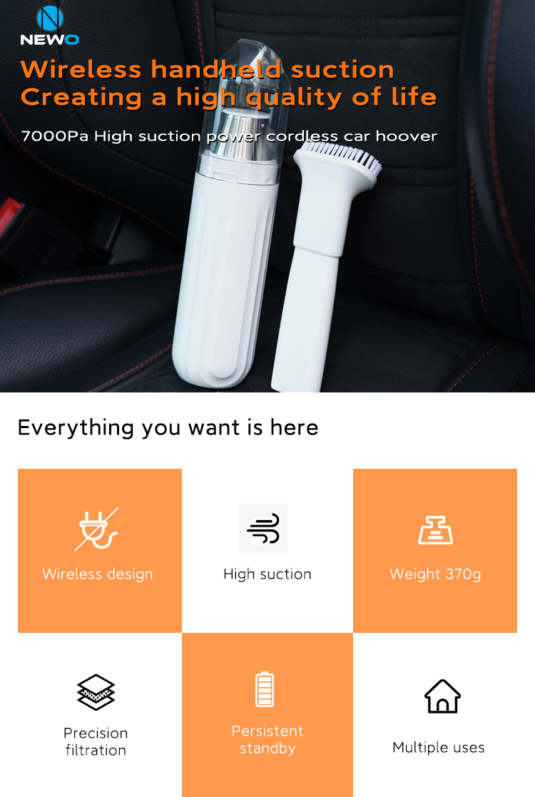 The NEWO D01 Car Vacuum Cleaner is a revolutionary cleaning solution designed for the modern car owner. With its powerful suction capability of 7000Pa and an energy-efficient 60W motor, the D01 is not only a high-performance vacuum cleaner but also a versatile吹吸二合一 (blow and suck) tool that caters to all your vehicle cleaning needs.