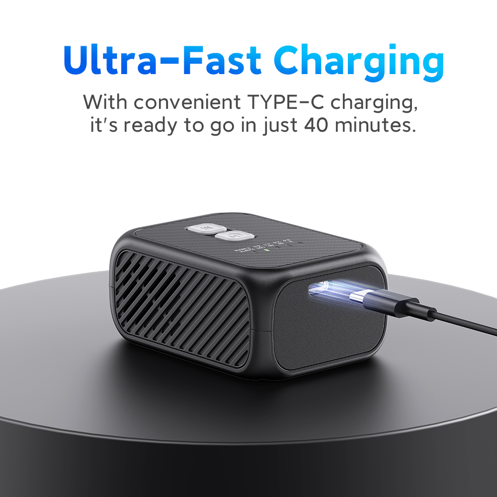 Lightweight (approx. 1 kg) and compact, it’s easy to carry on rides. The built-in rechargeable battery supports 1–3 hours of charging for extended use.