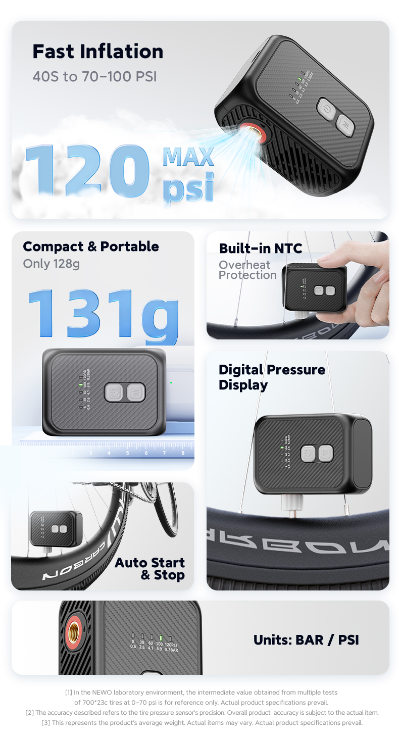 The NEWO LB03 Smart Electric Air Pump is designed for cyclists and riders who value precision, speed, and convenience. This compact pump eliminates manual effort and guesswork with its automatic electric operation and built-in digital pressure gauge, making it an essential tool for maintaining optimal tire pressure.