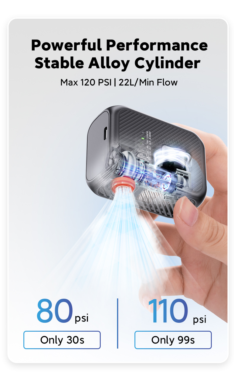 The integrated LCD screen displays real-time pressure (PSI), allowing you to inflate to the exact recommended level for your bike or motorcycle—no more under or over-inflation.