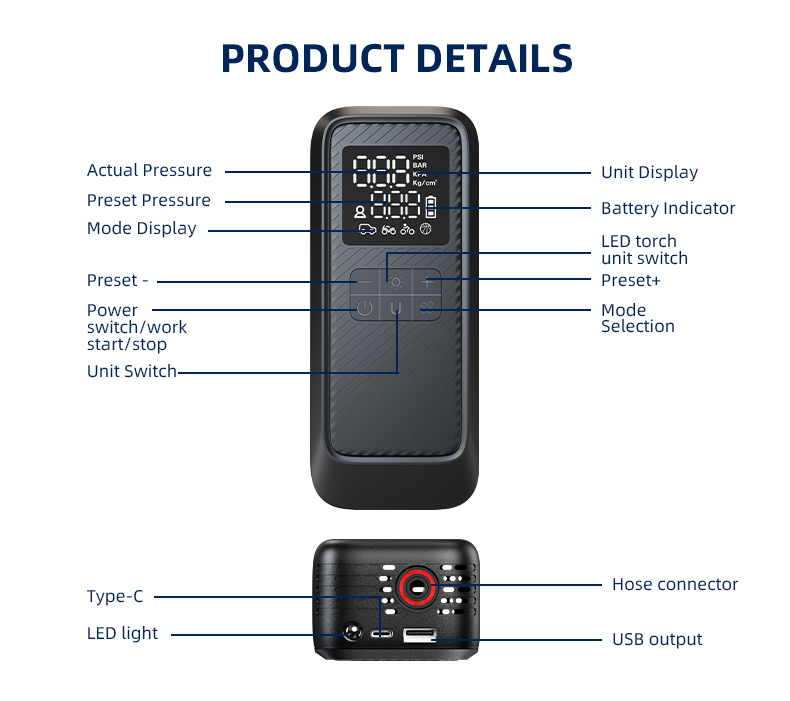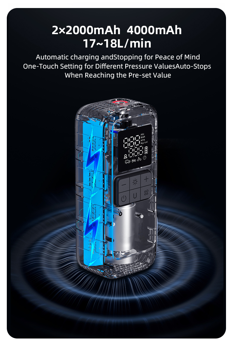 In summary, the LP17-A portable pump delivers a powerful, intelligent, and versatile inflation solution for a wide range of everyday needs. Its smart presets, clear display, and dual functionality as a power bank make it an indispensable and reliable tool for home, sports, and automotive care.