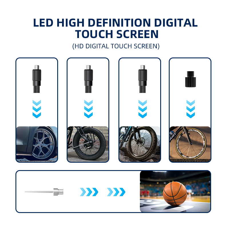 Smart One-Touch Operation: Features five intuitive preset modes (Ball, Bike, Motorcycle, Car, and Custom). The built-in high-precision sensor automatically stops inflation once the ideal pressure for the selected mode is reached, providing a foolproof and safe experience for all users.