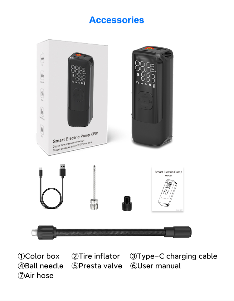 The KP01 Smart Tyre Inflator Pump is an efficient inflation device designed for the modern driver. It combines advanced technology and user-friendly features designed to provide a fast, accurate and convenient inflation experience for your tyres. Whether you are on a long journey, daily commute or in an emergency, the KP01 ensures that your tyres are kept in tip-top condition to keep you safe on the road.