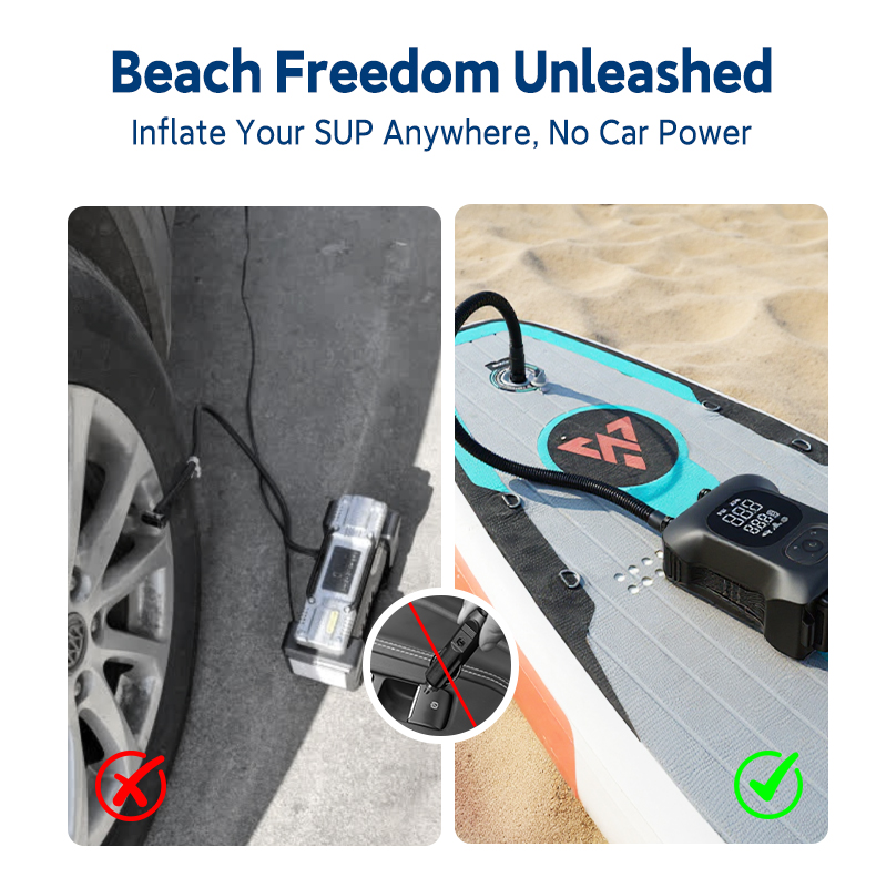 The NEWO U01 is a professional-grade, high-pressure electric pump designed for fast and convenient inflation of Stand-Up Paddleboards (SUPs) and other inflatables. Its core advantage lies in the powerful 36-cylinder motor and intelligent auto-stop feature, which work together to deliver quick, hands-free inflation up to a precise pressure of 20 PSI.