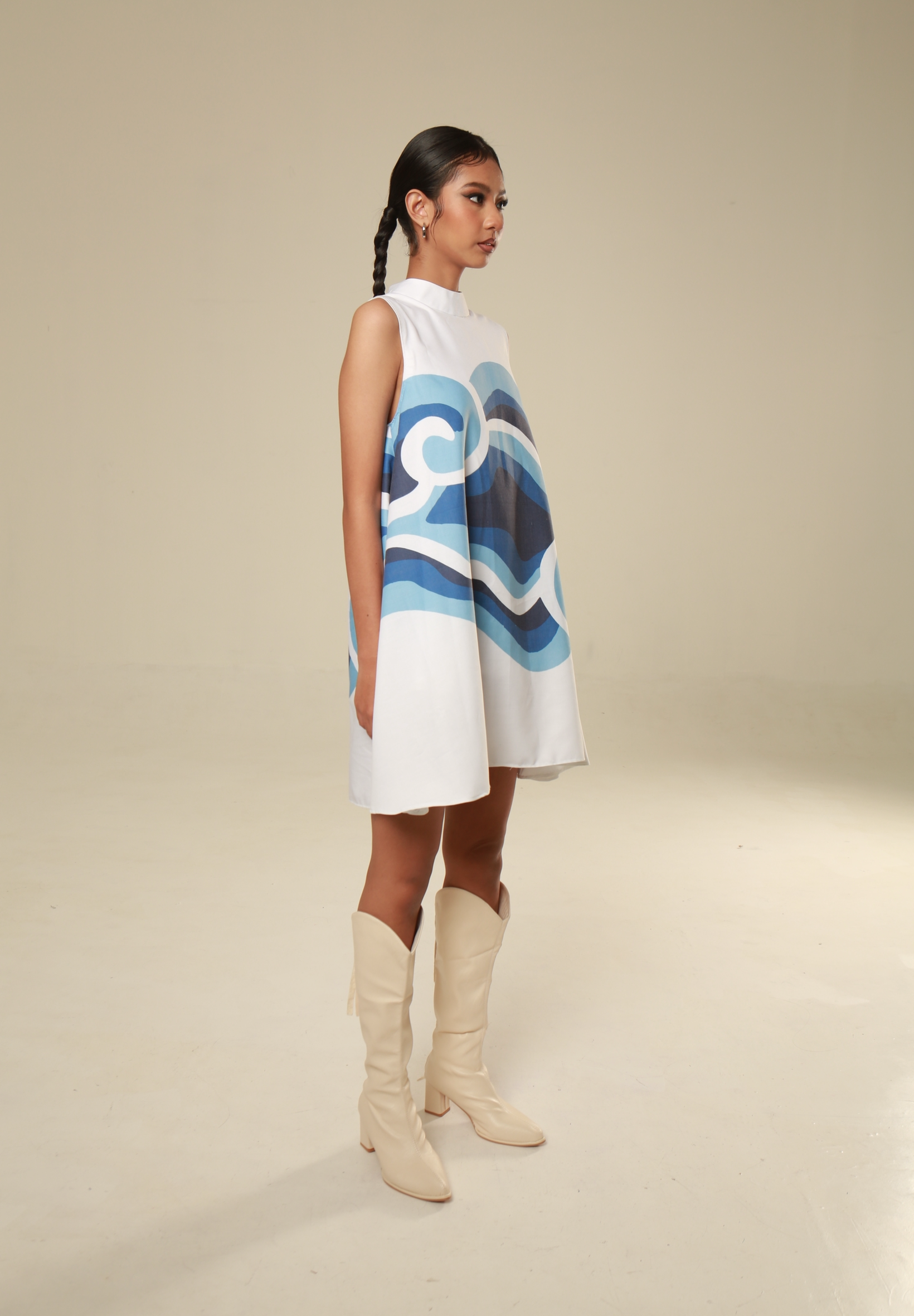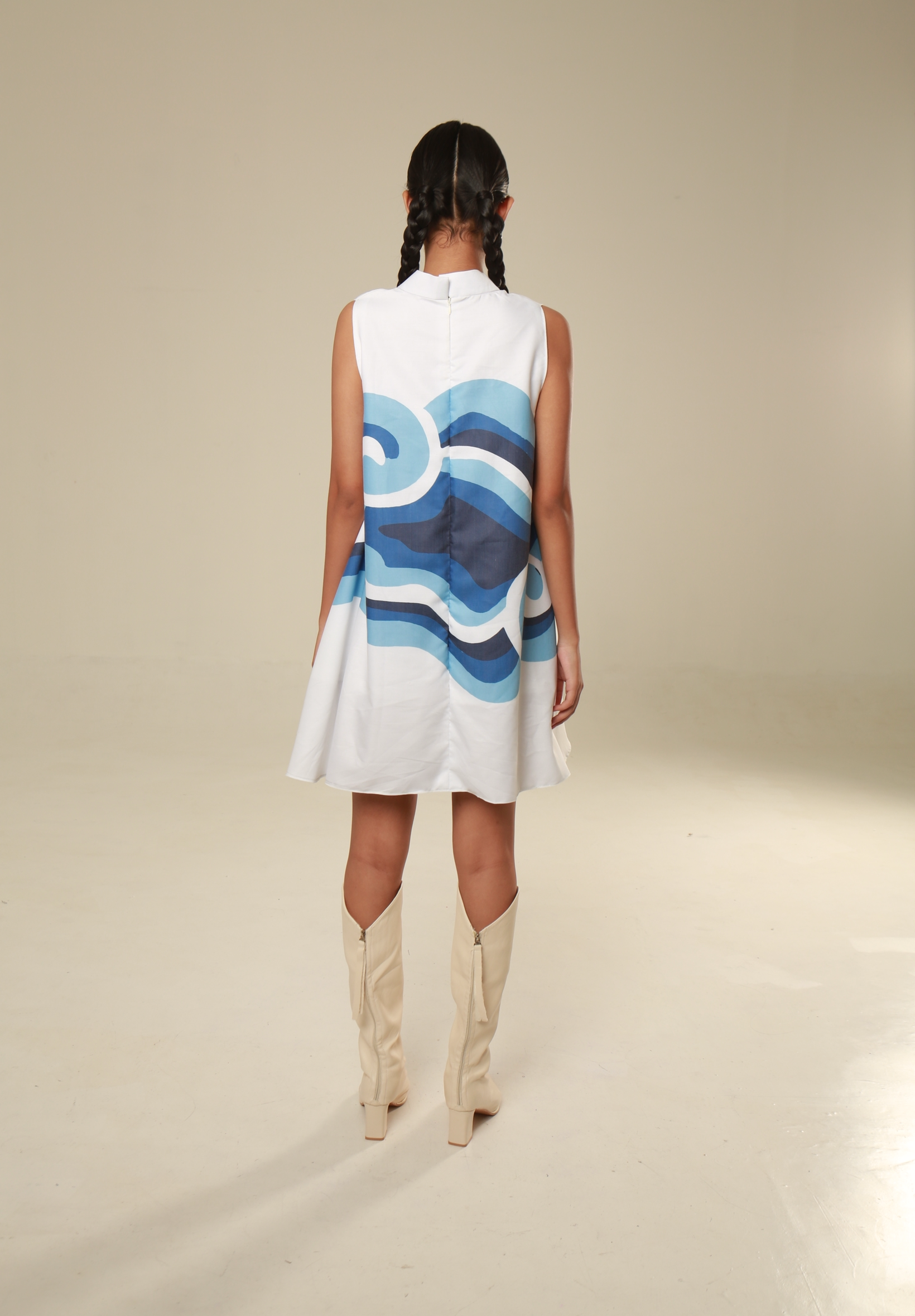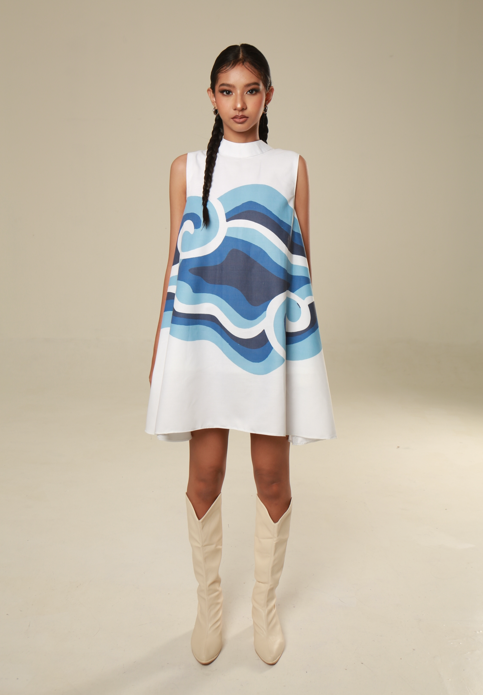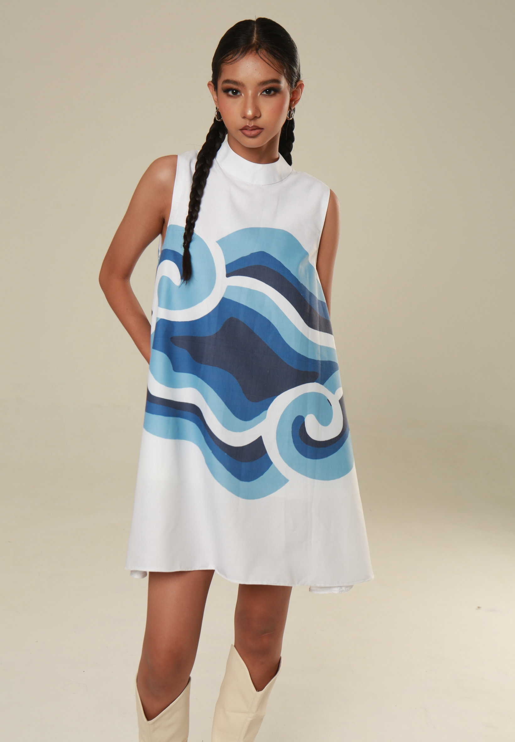 This printed dress is symbolic of West Java Traditional Batik named Mega Mendung. This dress was made from cotton.