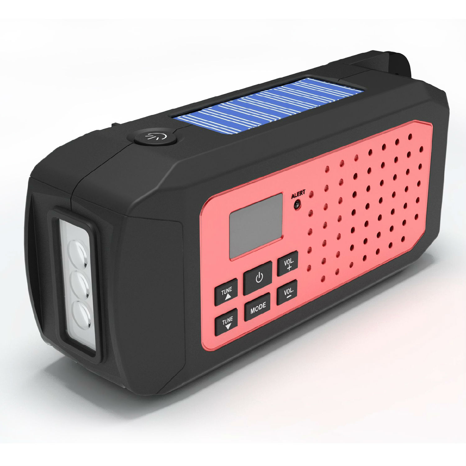 Built-In Speaker, Flashlight, Clock, Weather Band, Solar Charging, Gand Crank Dynamo