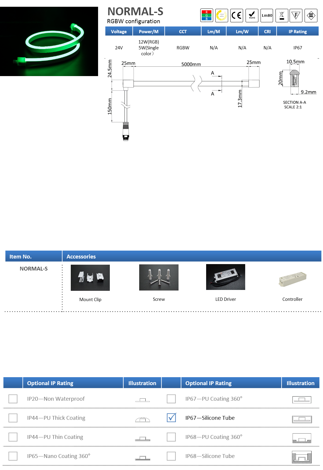 NORMAL-S - IP67 side bending neon strip light, RGBW
