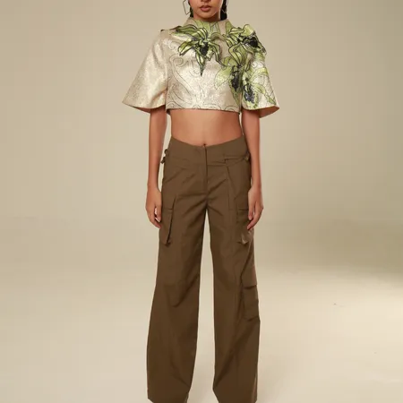 Skirt with a front opening, featuring flap cargo pockets to create an adventurous look, made from ripstop material for added durability and texture.