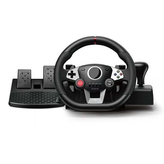 This is a multi-platform game steering wheel with high cost performance, compatible with 7 major mainstream platforms, including PC/Switch/PS4/PS3/XBOXONE/XBOX360/Android. PC supports X-input and D-input dual modes, built-in dual motors for high vibration feedback, 270° steering, adjustable steering sensitivity, and programmable buttons to meet your daily racing needs