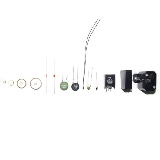 As shown are different types and shapes of Negative Temperature Coefficient(NTC) and Positive Temperature Coefficient (PTC) thermistors. They are compatible with various types of appliances. They are highly-sensitive and have very reproducible resistance. They are used as temperature sensing and correction devices.