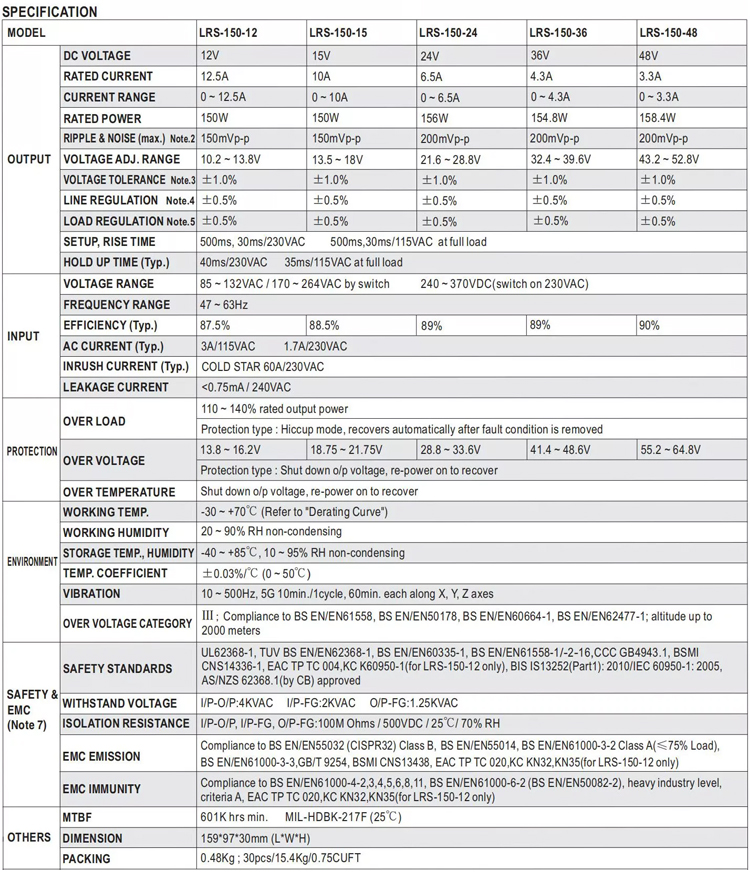 | LRS-150 Series 150W Switching Power Supply | |||||