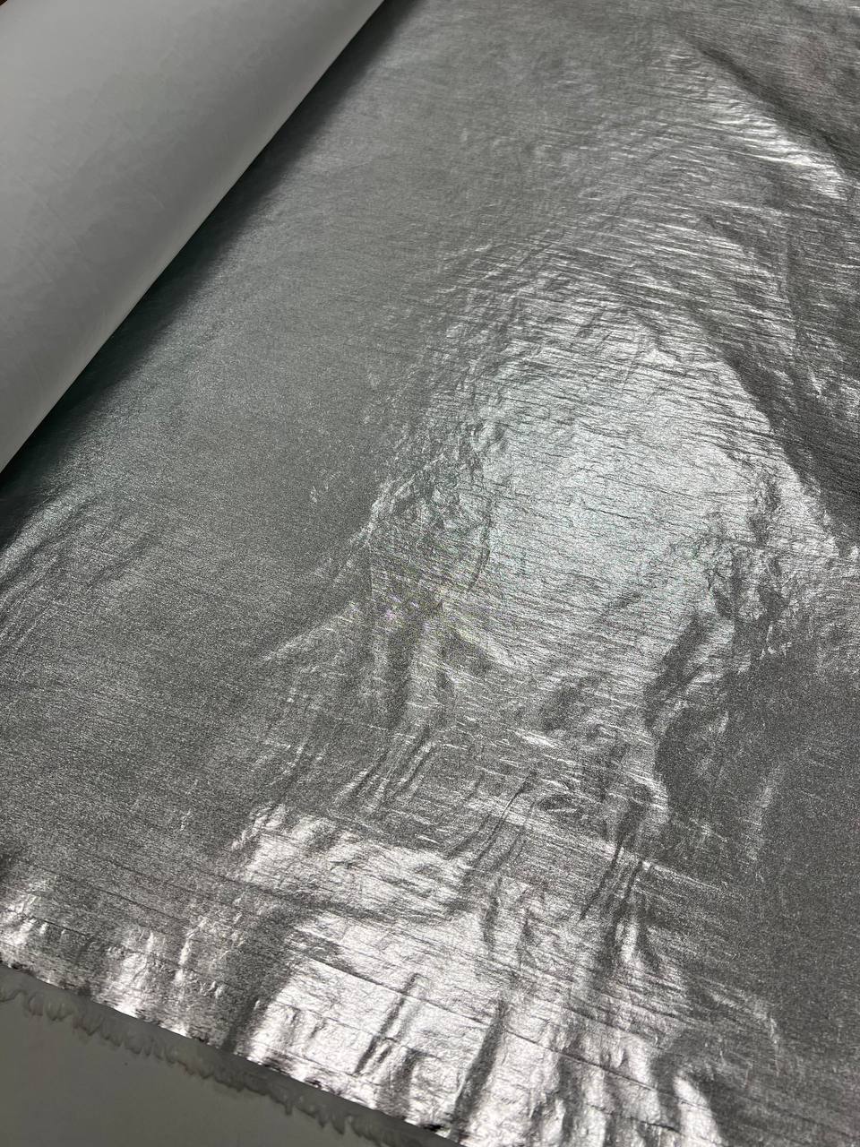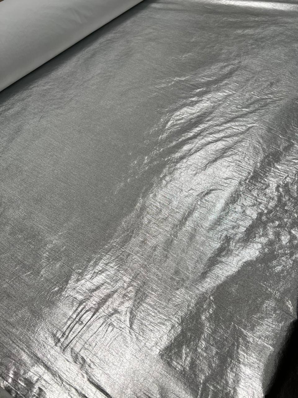 High quality, waterproof jacket and raincoat material with foil effect, creates a bright shimmer on the fabric;