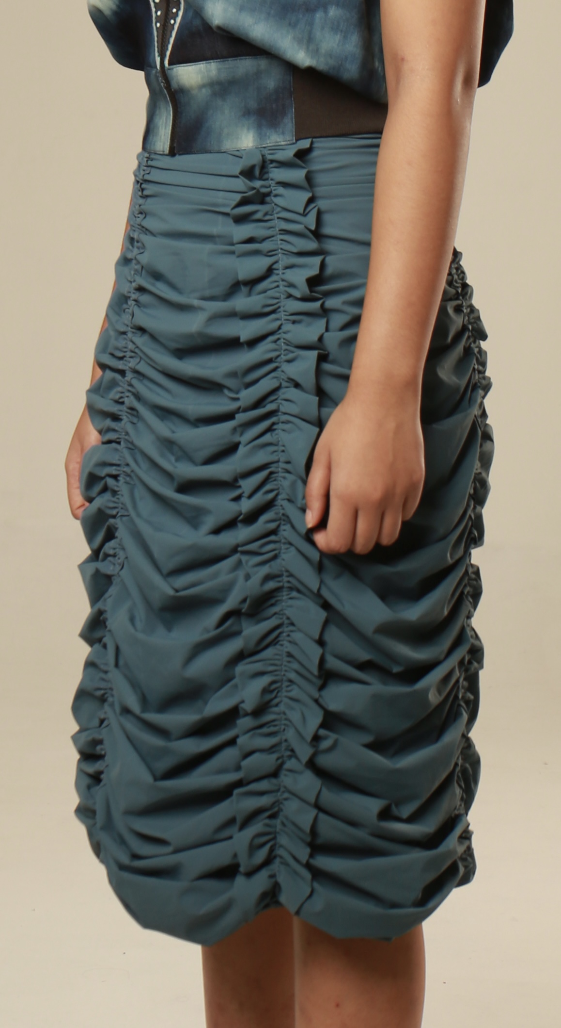 NASYWA ZAHRADINA TUNGGAL DEWINZ 02Blue Parachute With Ruffle Detail And Thigh Slits, All Size, 300gr, Women