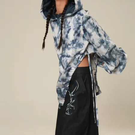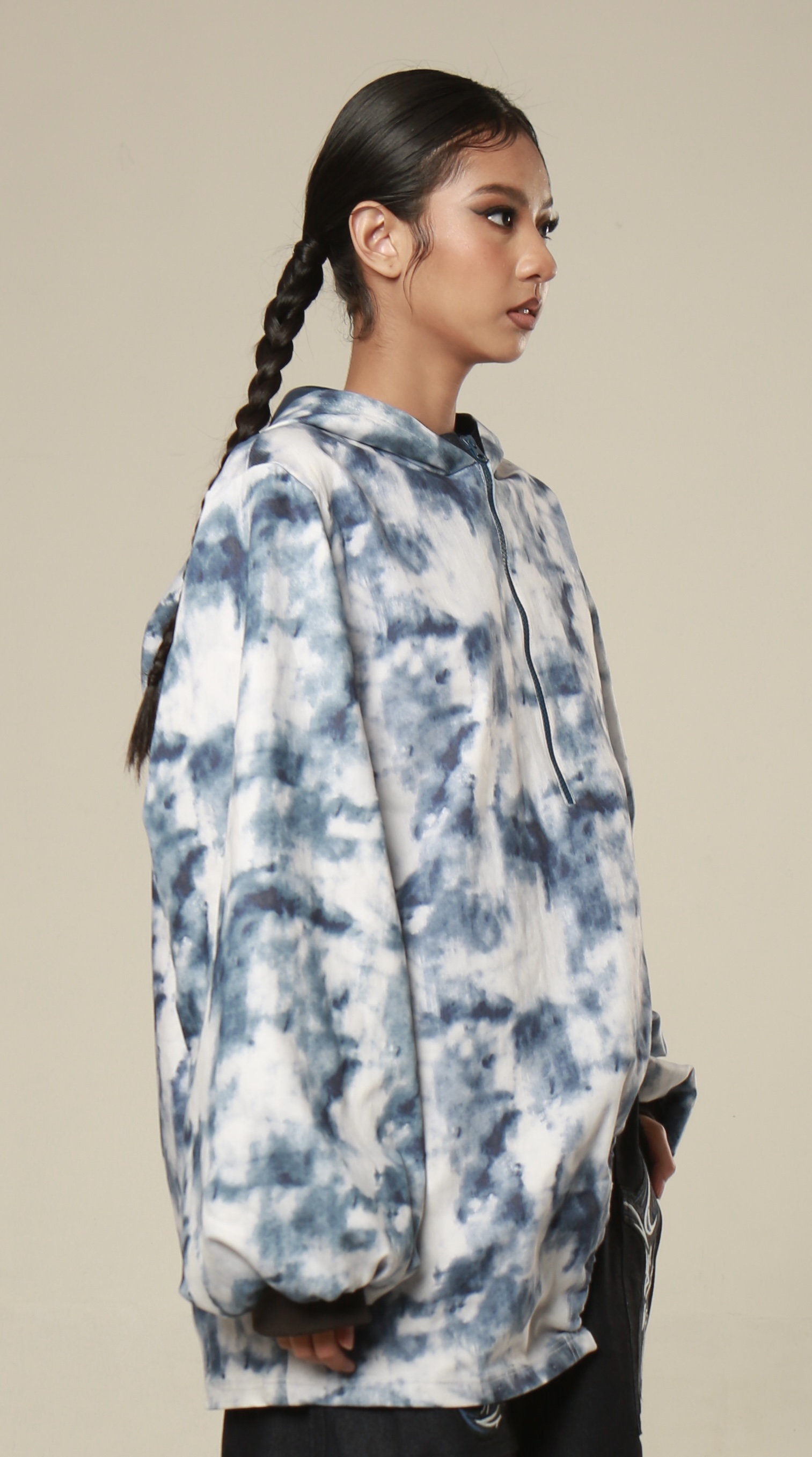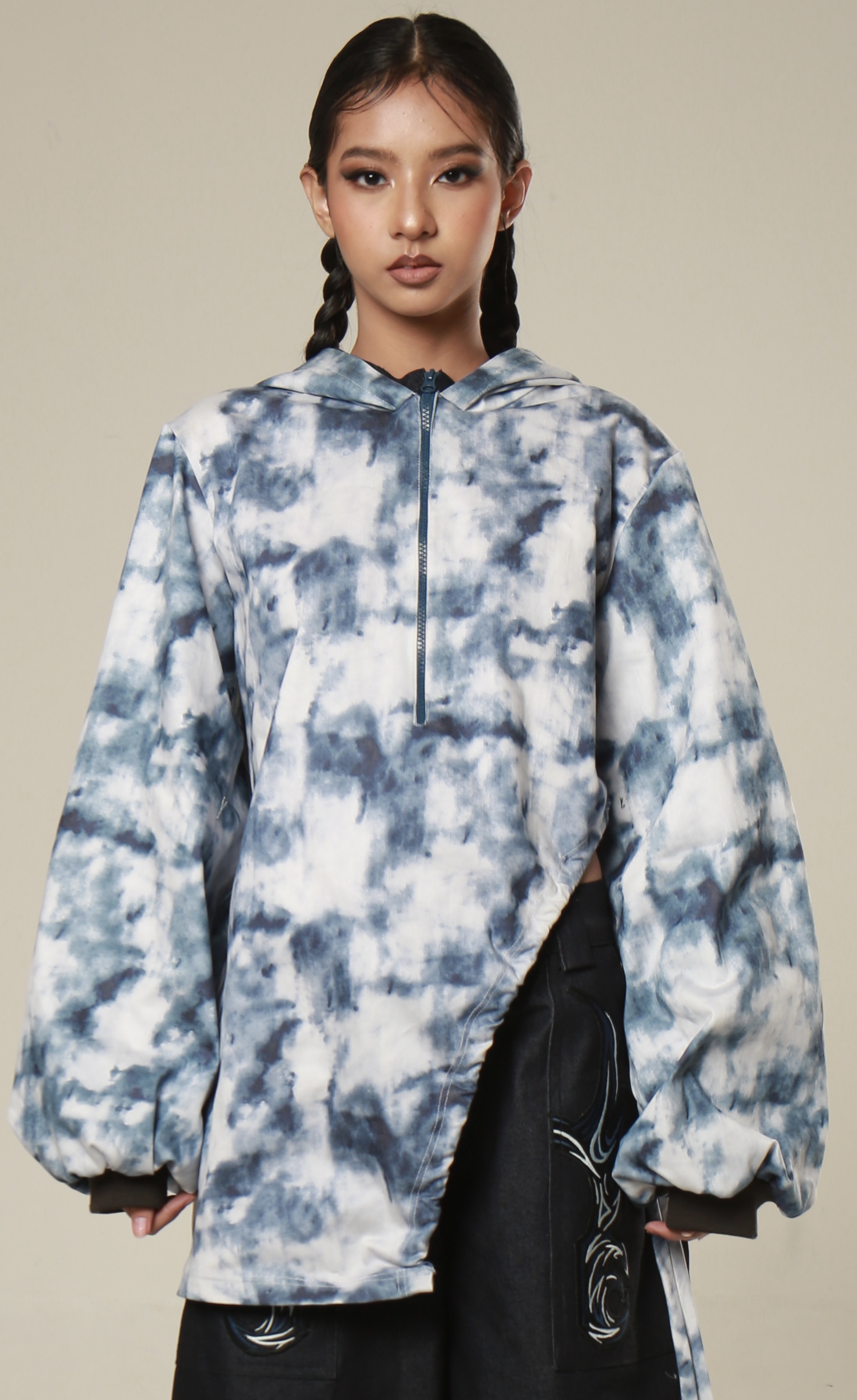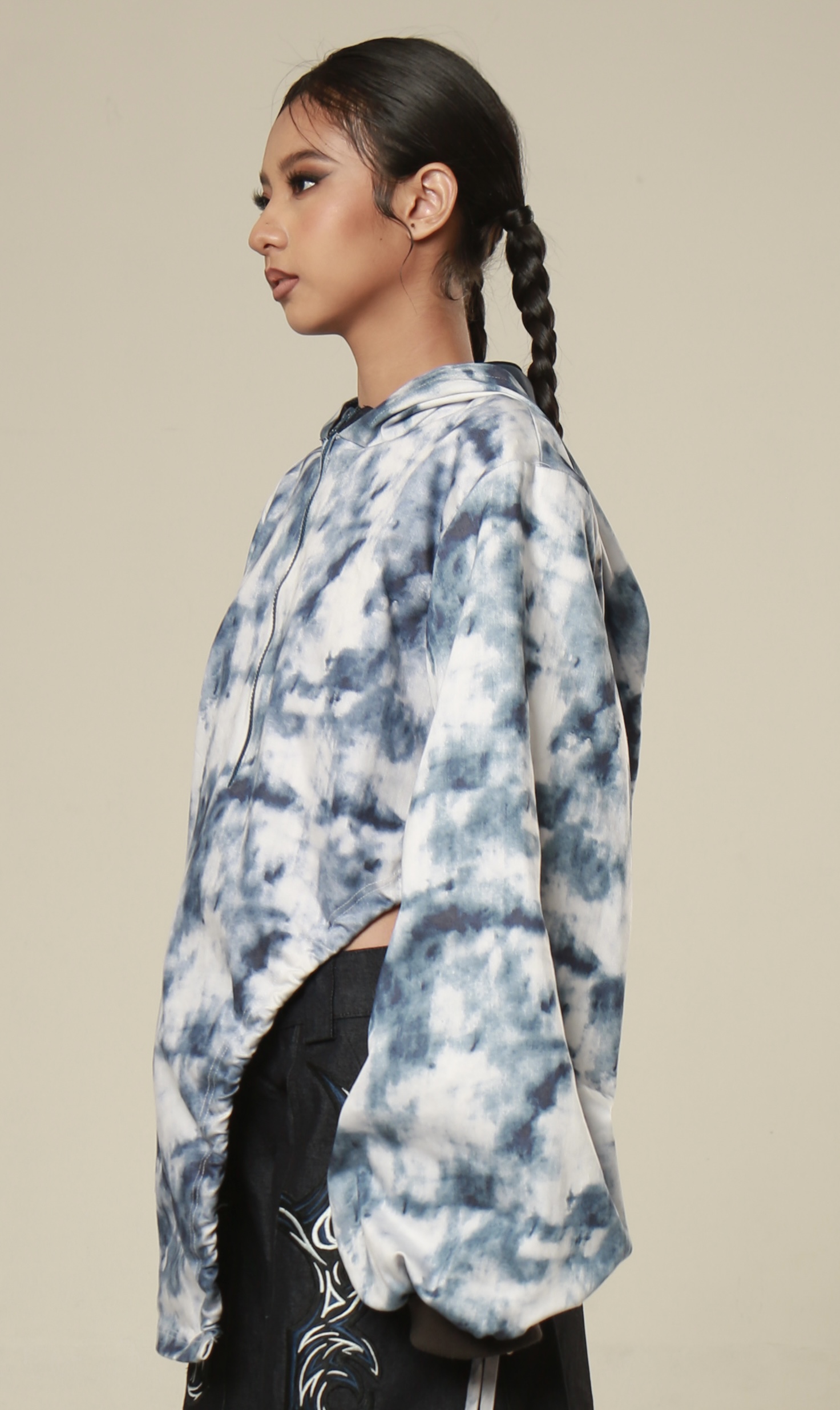 NASYWA ZAHRADINA TUNGGAL DEWINZ 05Denim Oversize Hoodie With Printing Motif Technique And Front Zipper Opening, All Size, 500gr, Women