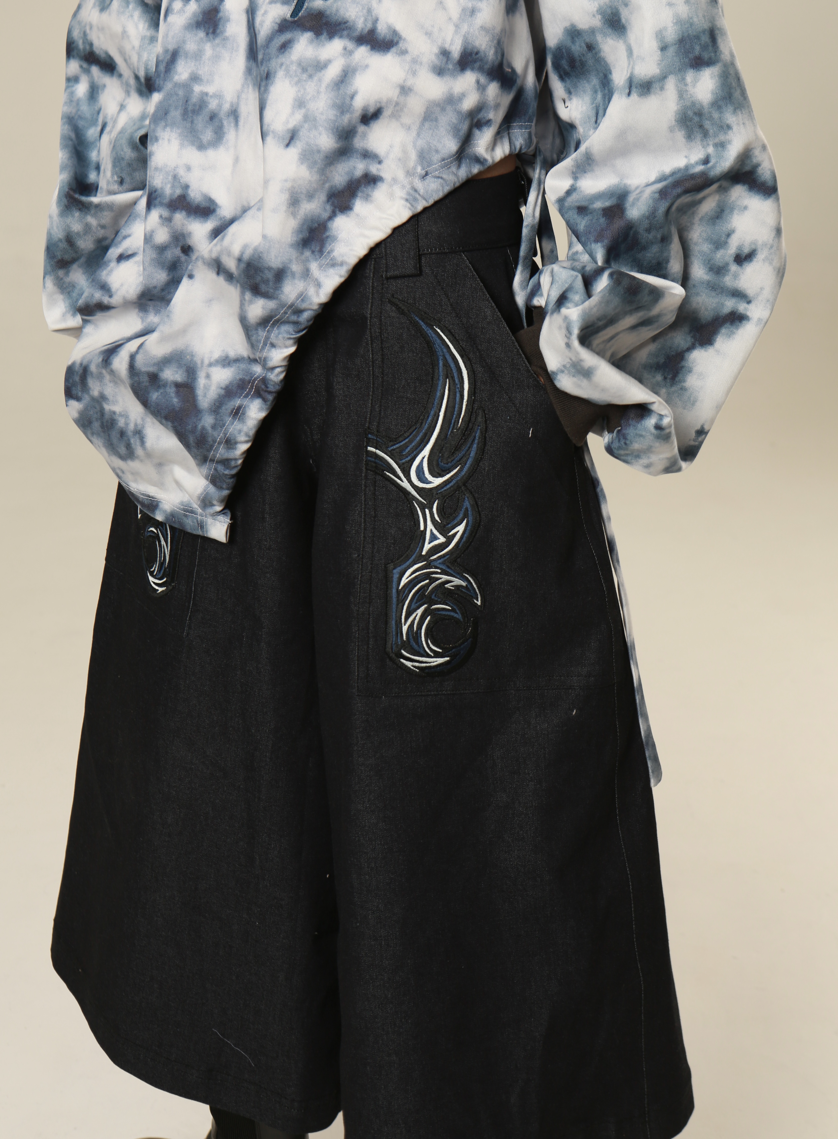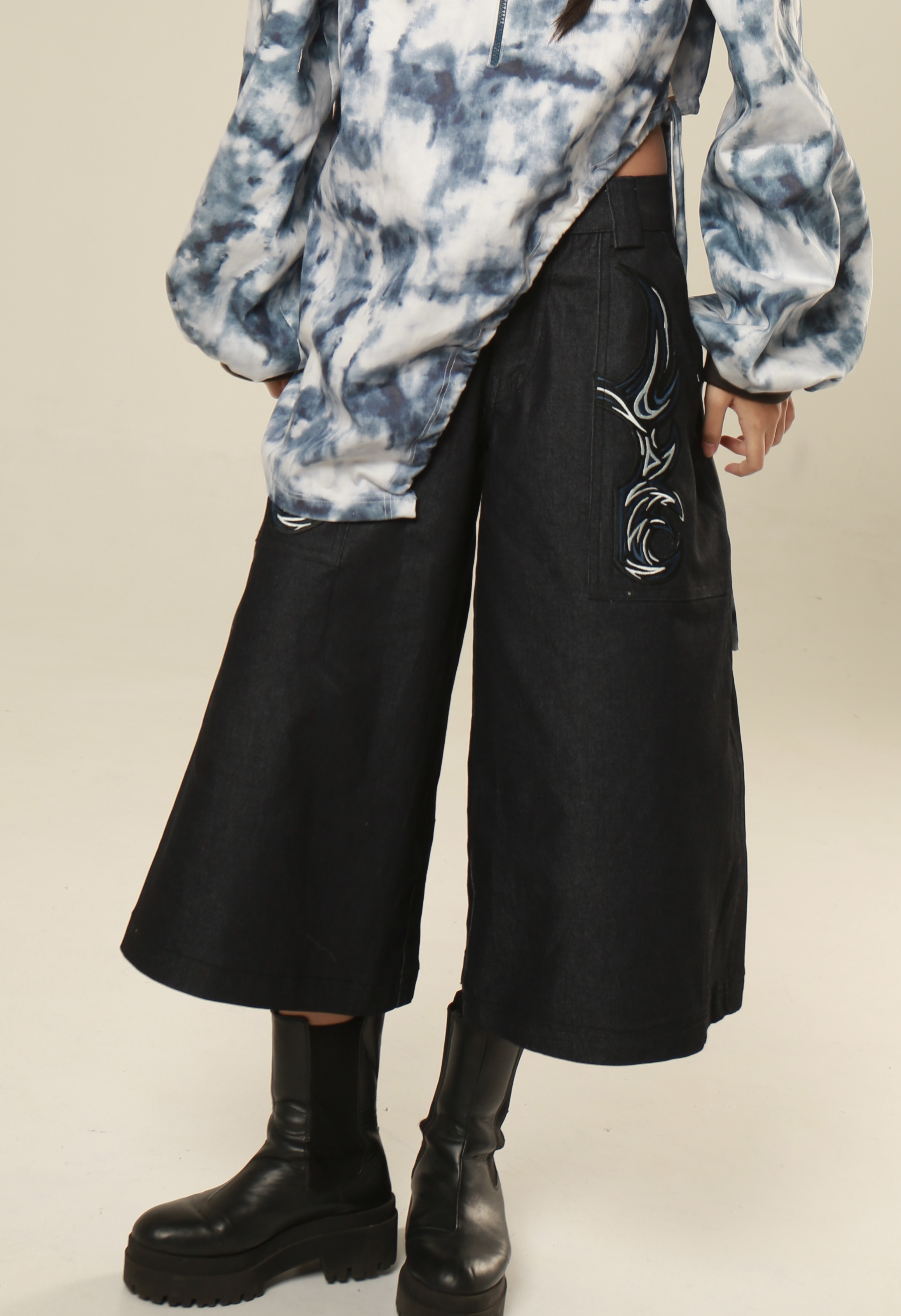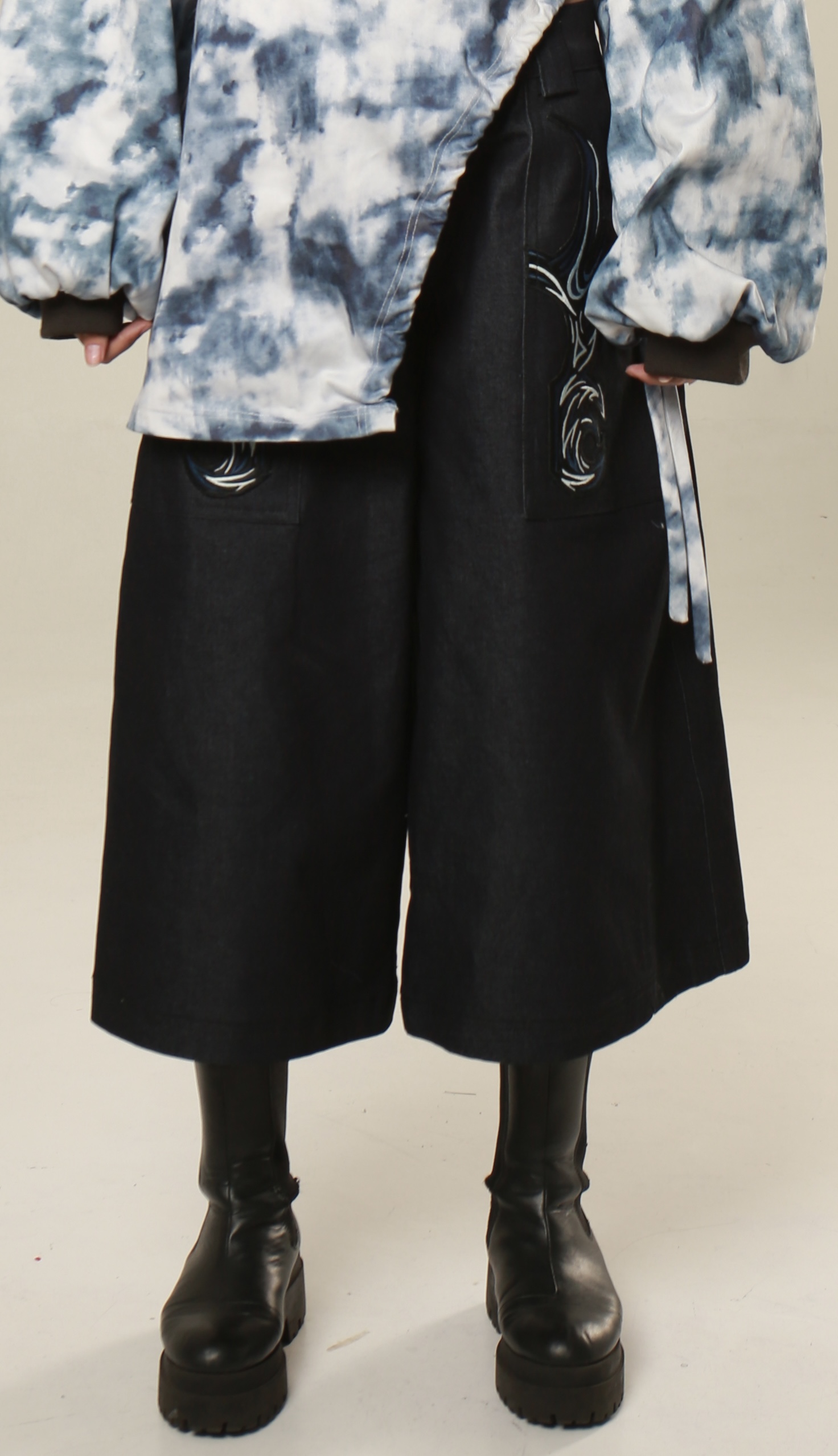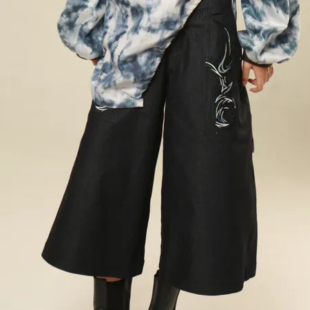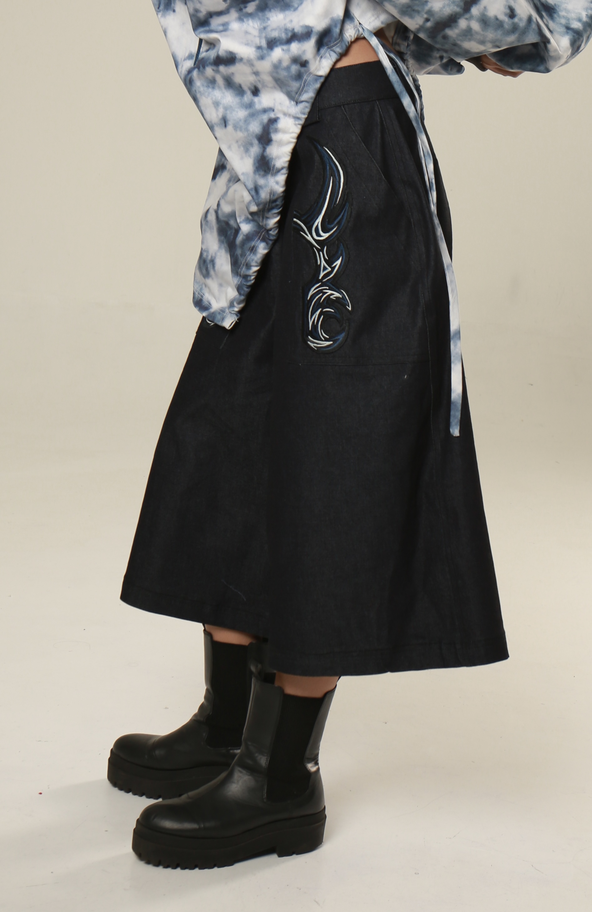 NASYWA ZAHRADINA TUNGGAL DEWINZ 06Dark Blue Denim Chambray With Embroidery Detail And Pocket, All Size, 350gr, Women
