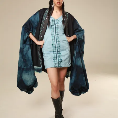NASYWA ZAHRADINA TUNGGAL DEWINZ 10Light Blue Denim With Embroidery On the Front And Zipper On The Bottom, S/M/L, 300gr, Women
