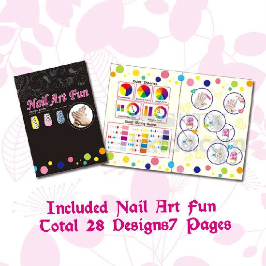 - It contents: 6pc nail polish,2pc shimmer powder,1pc rhinestones, 2pc nail file, 2pc nail separator,2pc nail set,1pc nail dryer,1pc color palette,1pc nail art book