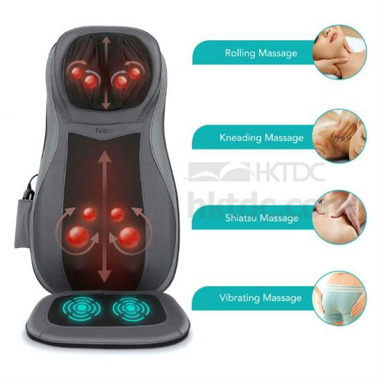 • 8 Rolling Massage Nodes, travel the full back, upper and lower, stimulating muscles on both sides of the spine.