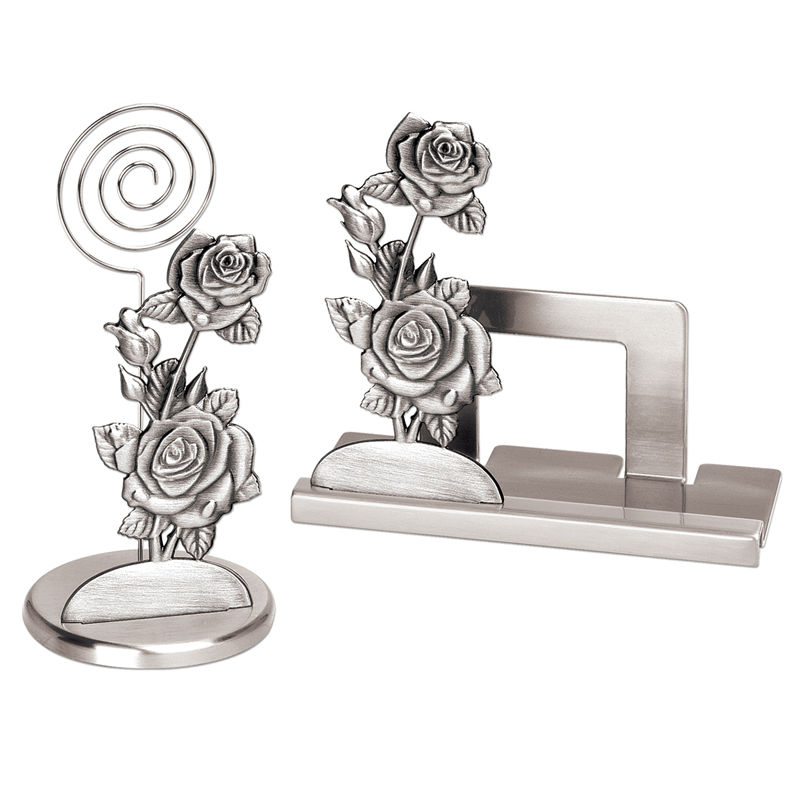 • With pewter coloured rose figurine in front