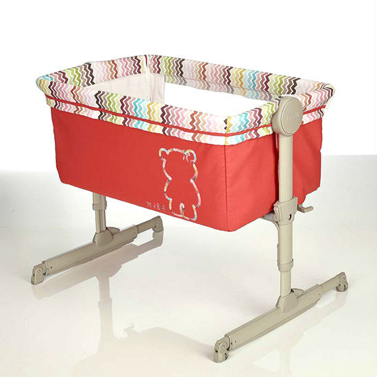 The crib if fitted with individual wheels on each foot, to facilitate movement in other domestic environments. When it is used as a traditional crib, the hinged lip has a mesh side window, which allows the child to see the space around him. This window also helps proper ventilation of the cradle. The two simple buttons on the sides give the crib up to six height positions. (from 33.5 cm / 13,2 in (position 1) and up to 49.5 cm/ 19,5 in (position 6). Easy tilt independently on both sides, to help the child breathe easier and help digestion. Made in Italy.