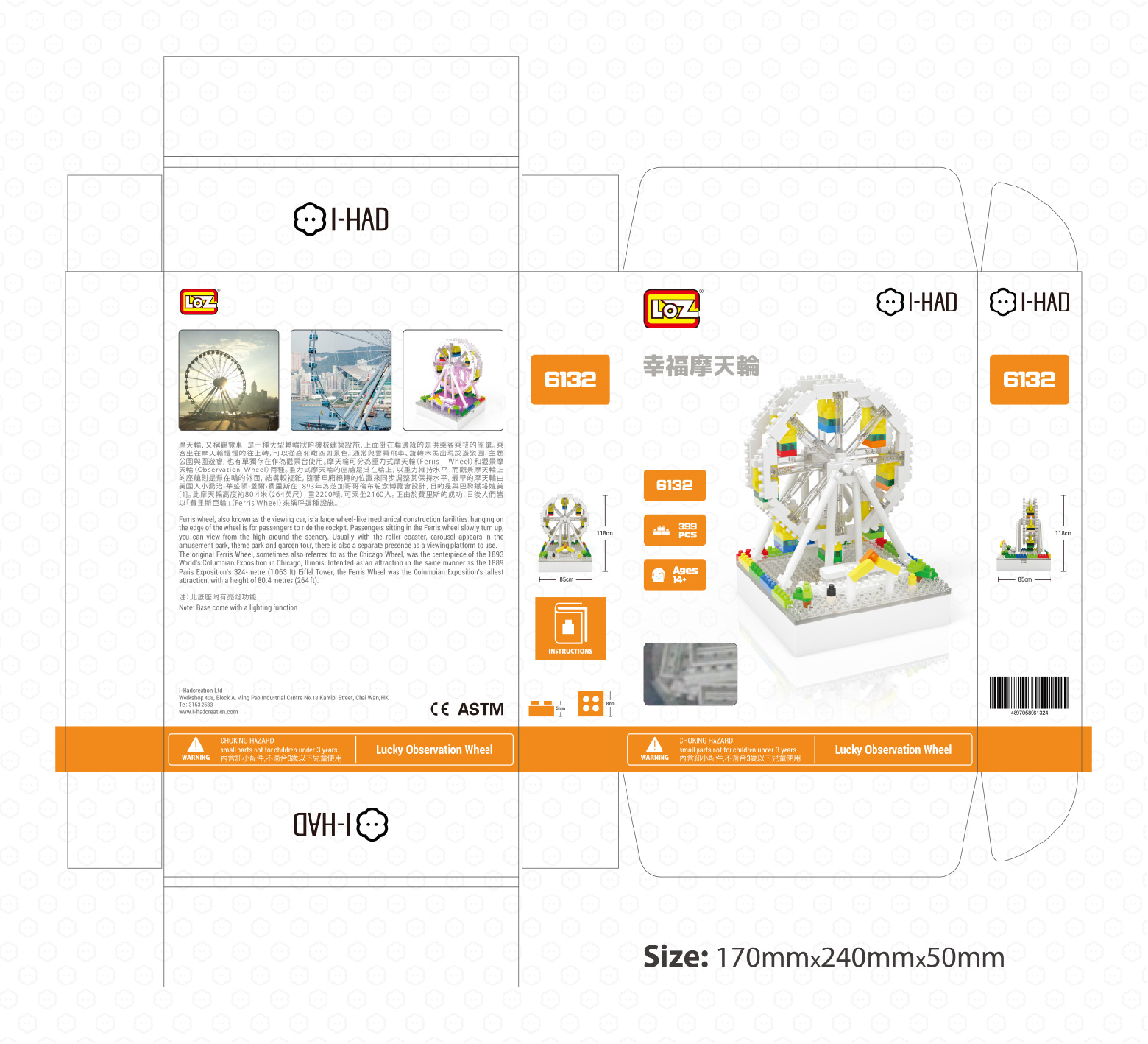 Create a delightful decoration for your tabletop, bookshelf, or working desk while enjoying building fun with this nanoblock set. The set contains 339 pieces of mini blocks that can be assembled into a colorful Ferris wheel. A light base is included to offer stunning lighting effect that can spruce up the creation instantly.