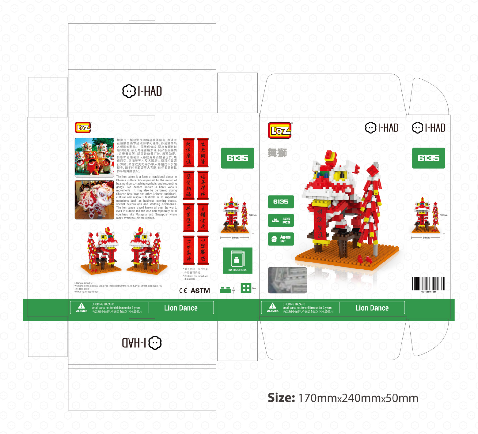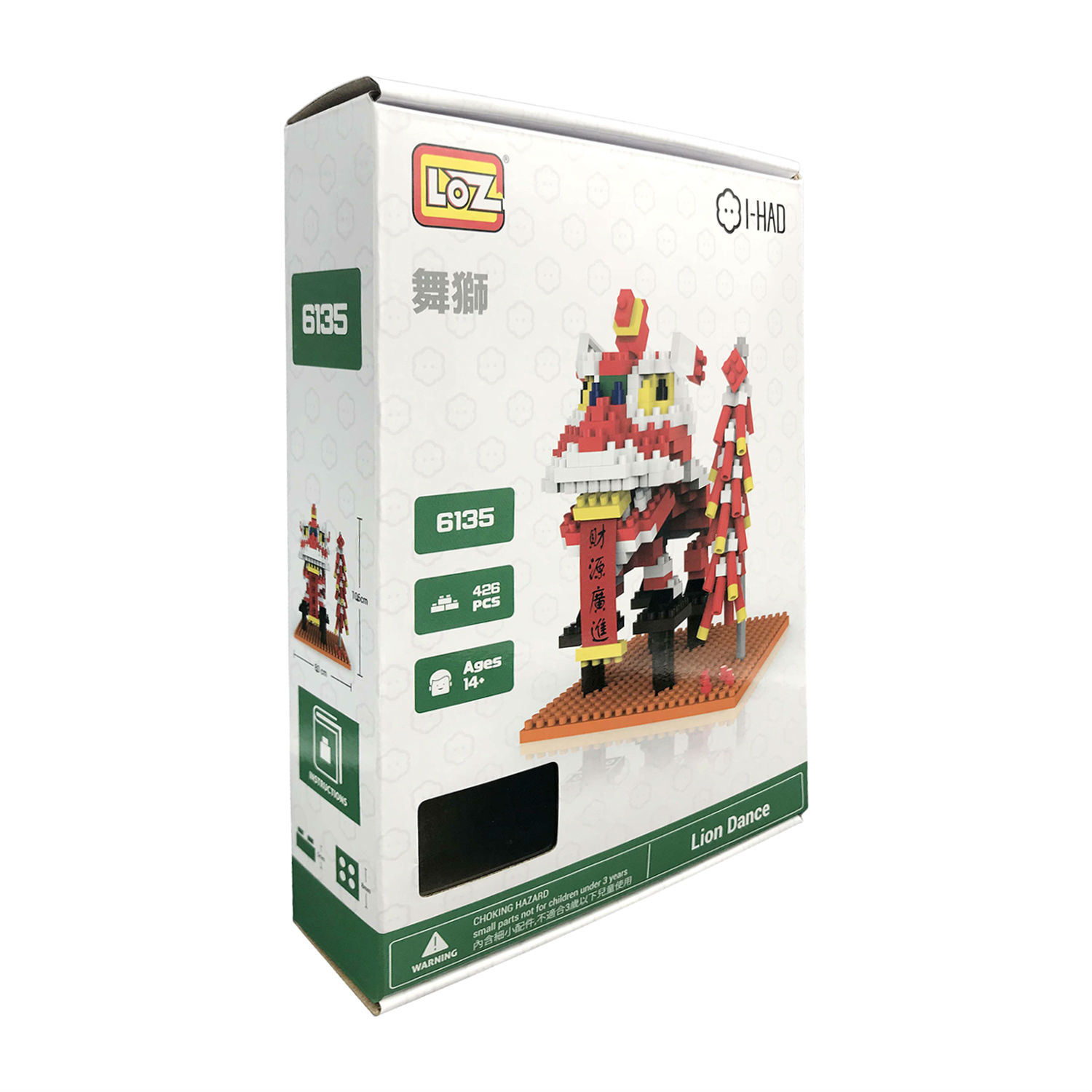 • Building block set that can make a lion dance figure and a strand of firecrackers on a square base.